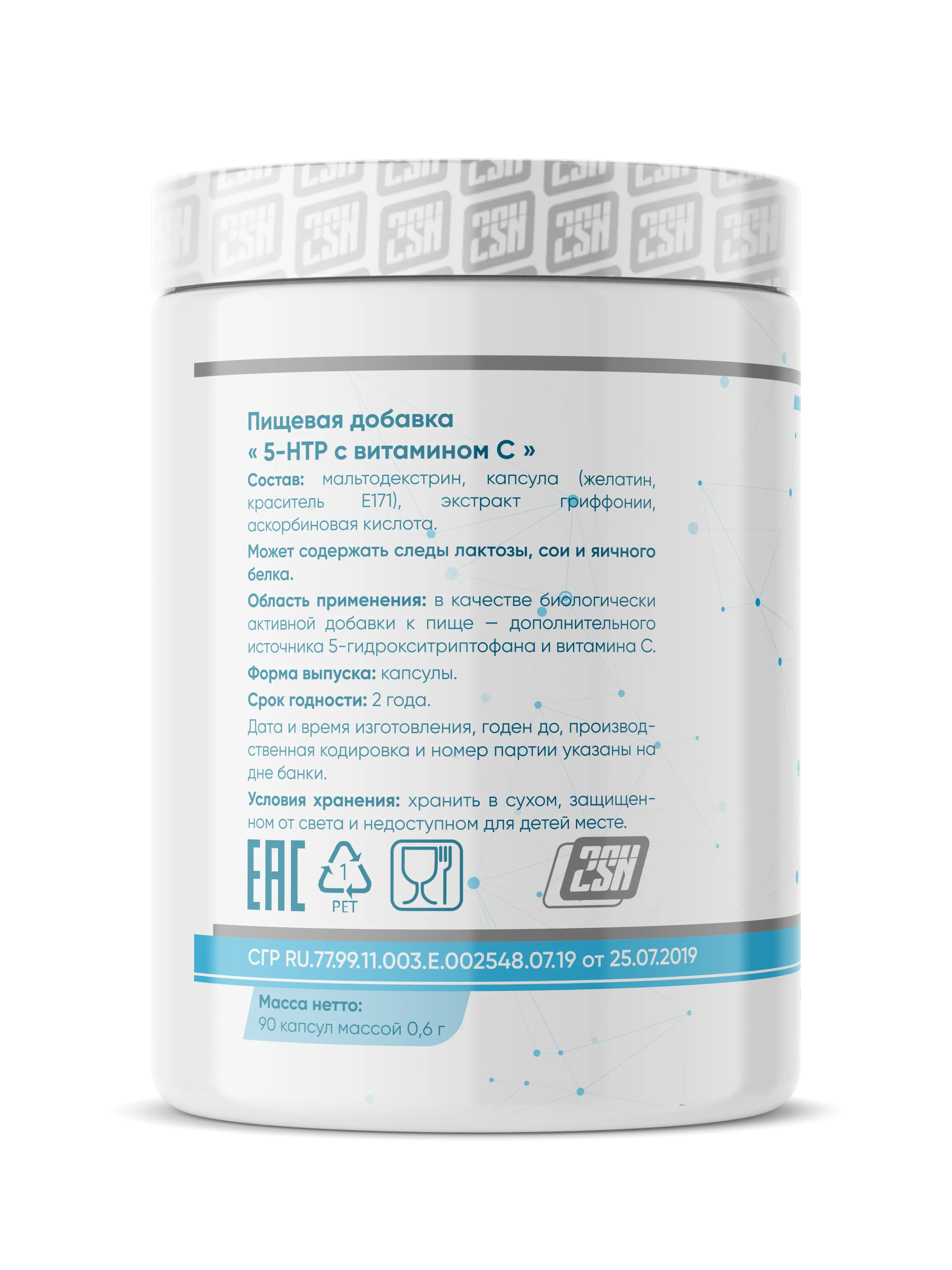 2SN 5-HTP + Vit C – это особая форма аминокислоты триптофана, стимулирует образование главного нейромедиатора хорошего настроения серотонина.