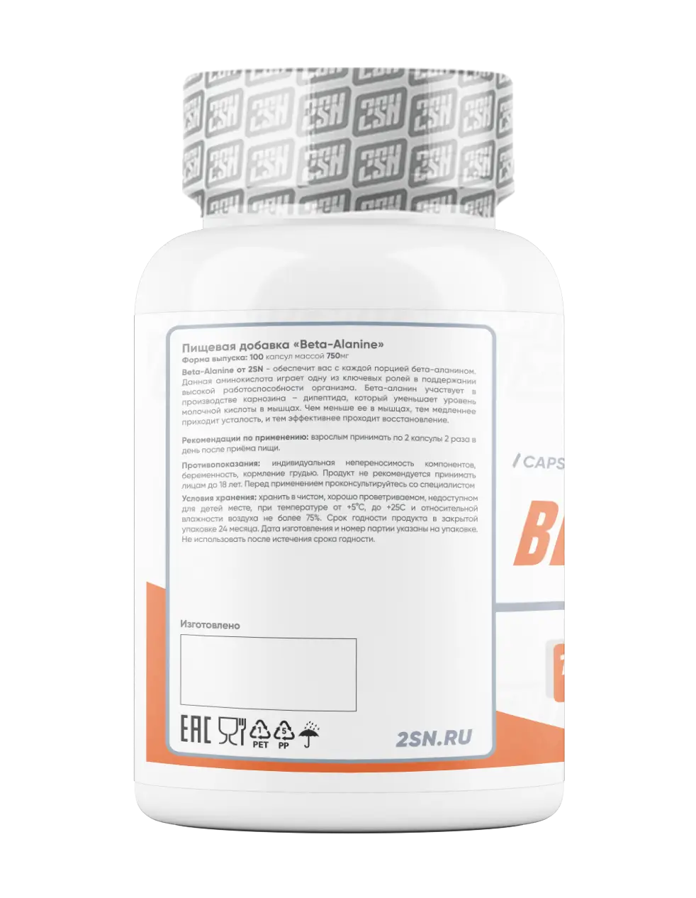 2SN Beta Alanine – это особая форма аминокислоты аланина. Вместе с гистидином образует в мышцах специальный пептид – карнозин.