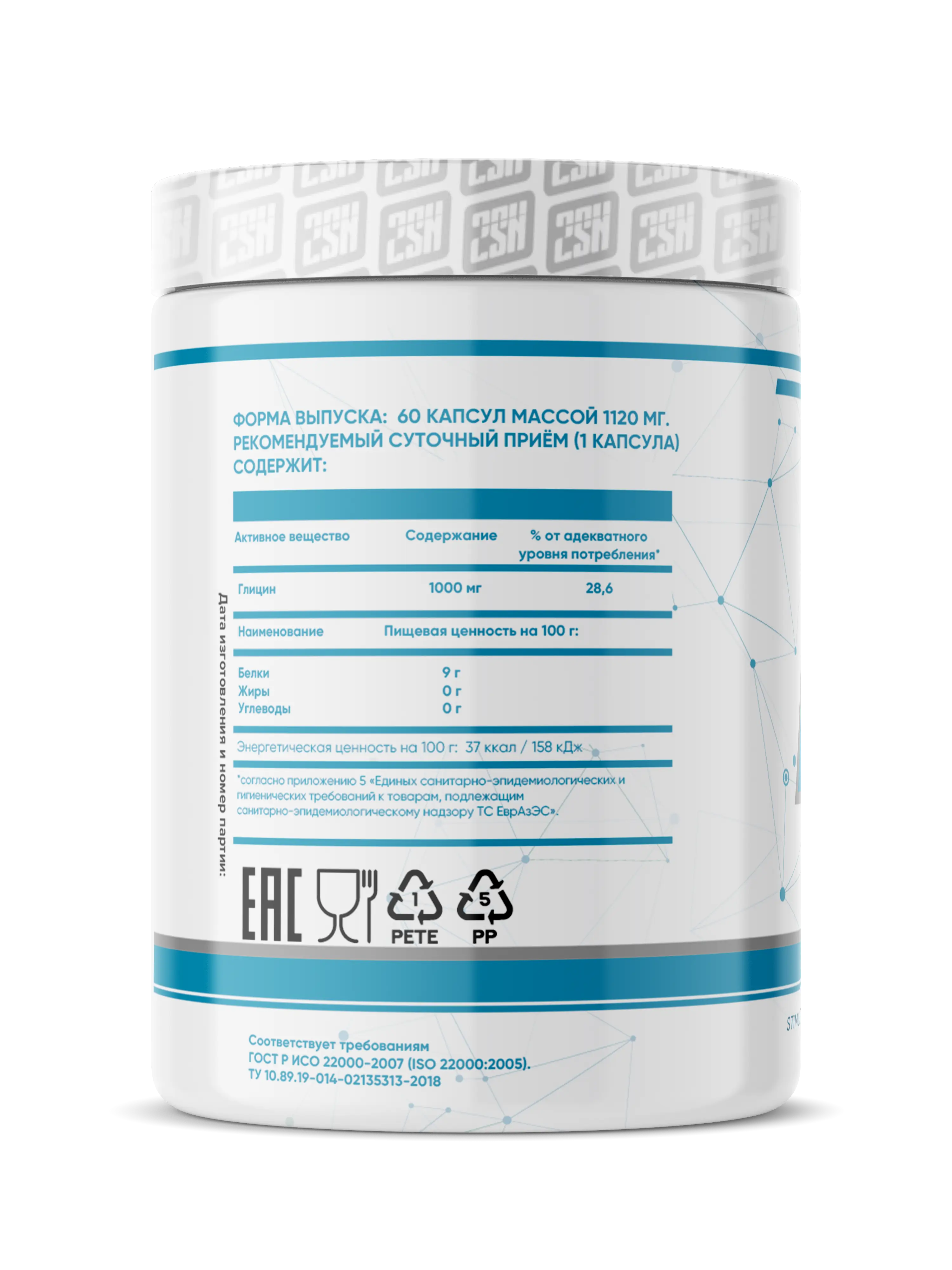- В клинических исследованиях было показано, что незаменимая аминокислота глицин оказывает успокаивающее действие на мозг. Чтобы обеспечить максимальную пользу наша добавка содержит 1000 мг глицина, значительно больше, чем многие традиционные добавки с глицин