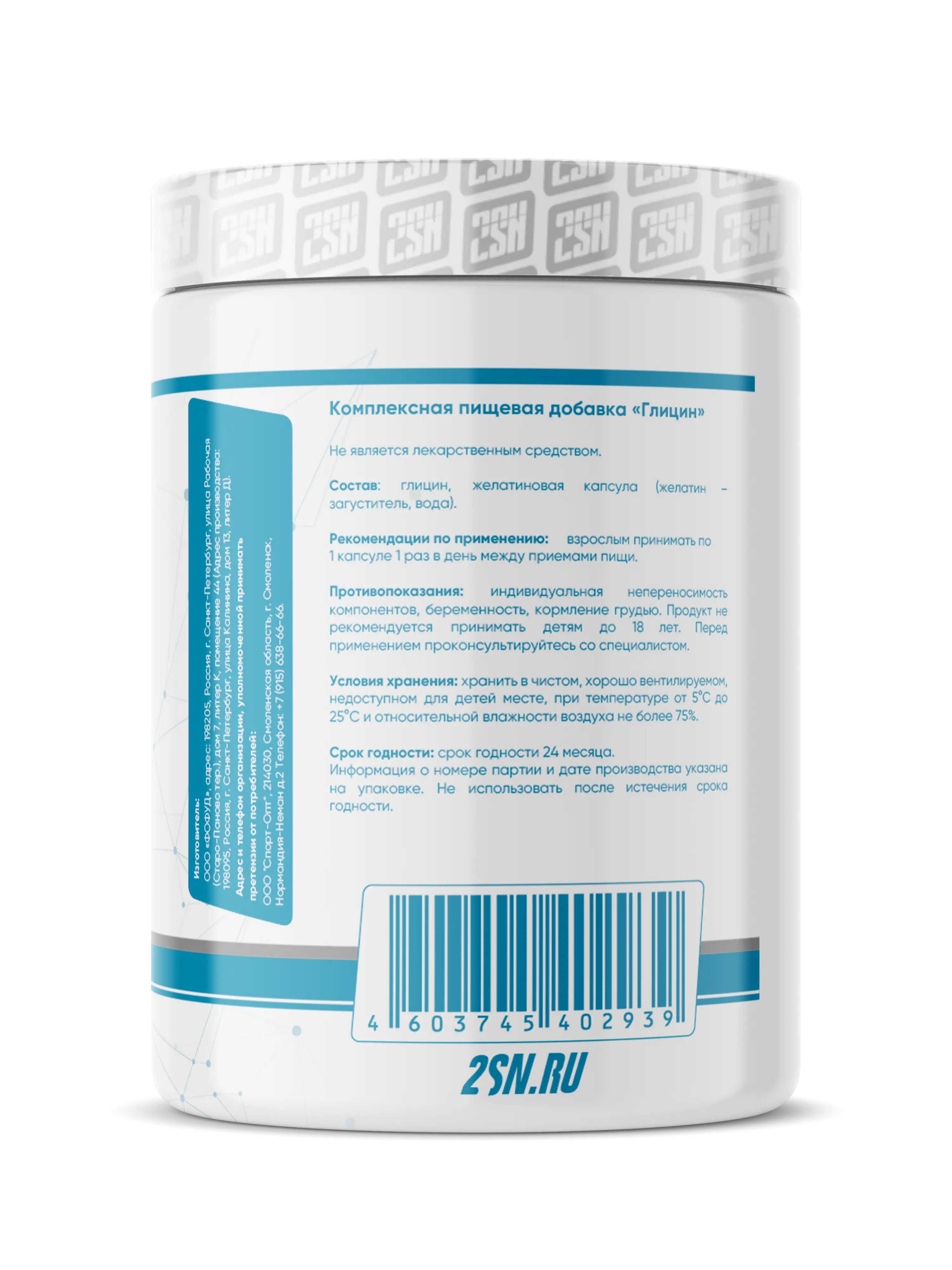 Состав: глицин, желатиновая капсула (желатин-загуститель, вода).