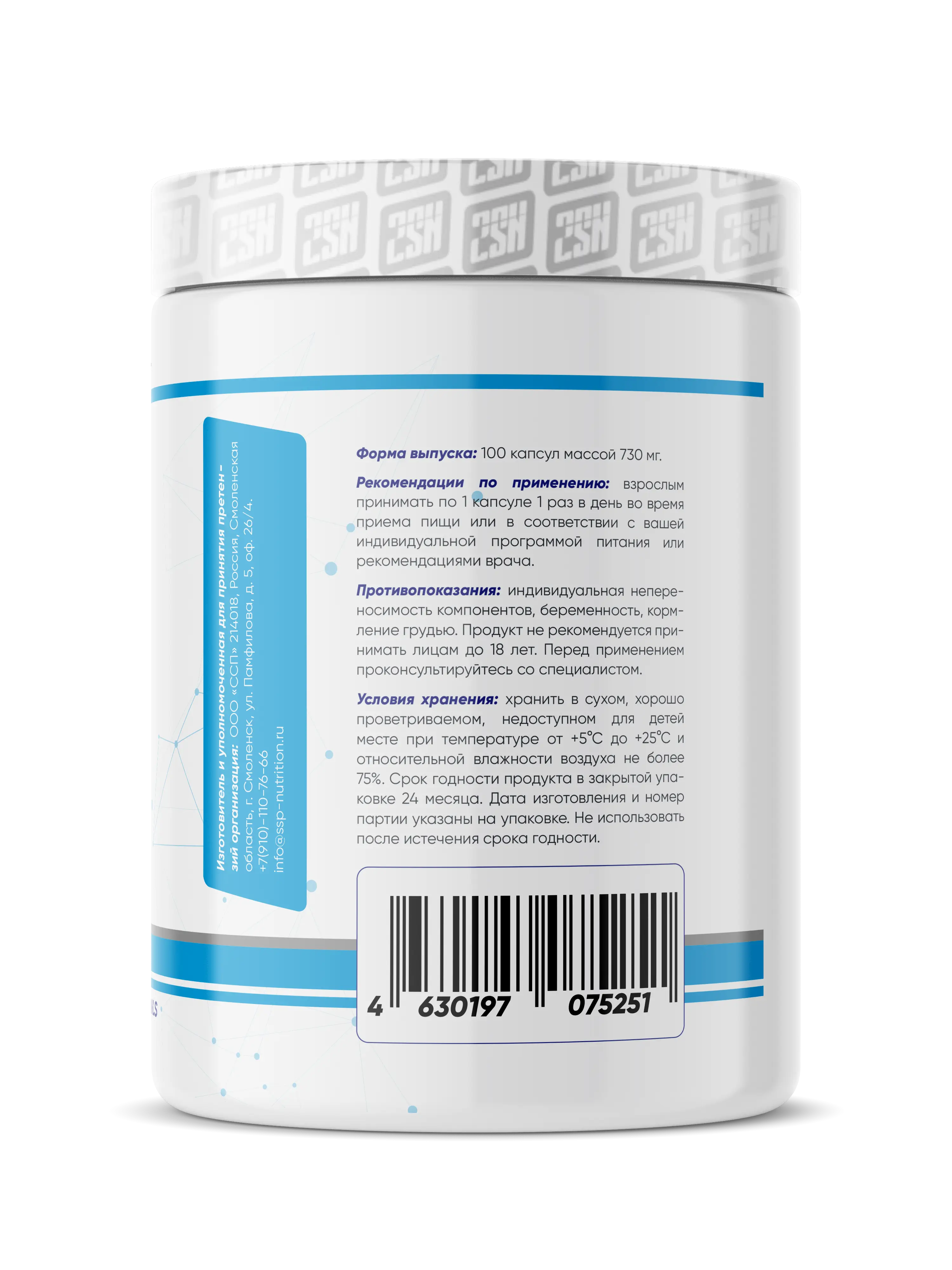 Условия хранения: хранить в сухом, хорошо проветриваемом, недоступном для детей месте при температуре от +5°С до +25°С и относительной влажности воздуха не более 75%. Срок годности продукта в закрытой упаковке 24 месяца. Дата изготовления и номер партии указаны на упаковке. Не использовать после истечения срока годности.