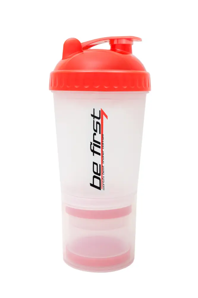 Спортивный пластиковый шейкер объемом 600 мл с дополнительными отделениями является самым оптимальным аксессуаром для спорта, фитнеса и кулинарии, объединяет в себе многофункциональность применения в повседневной жизни, во время путешествий, на отдыхе и на кухне, став превосходным помощником для человека, ведущего активный образ жизни. Он имеет поистине неограниченные возможности. При производстве этого шейкера компания использовала экологически чистый для человека пластик BPA FREE. В комплектации есть дополнительный контейнер, прикручивающийся ко дну шейкера, в котором можно транспортировать и хранить порошок, капсулы или таблетки, что делает его Вашим помощником на тренировке. В отличие от шейкеров других производителей, в нашем шейкере есть дополнительный контейнер в контейнере. В прикручивающемся контейнере вы можете хранить дневную порцию гейнера или протеина, а второй контейнер использовать отдельно как кейс для таблеток или капсул.