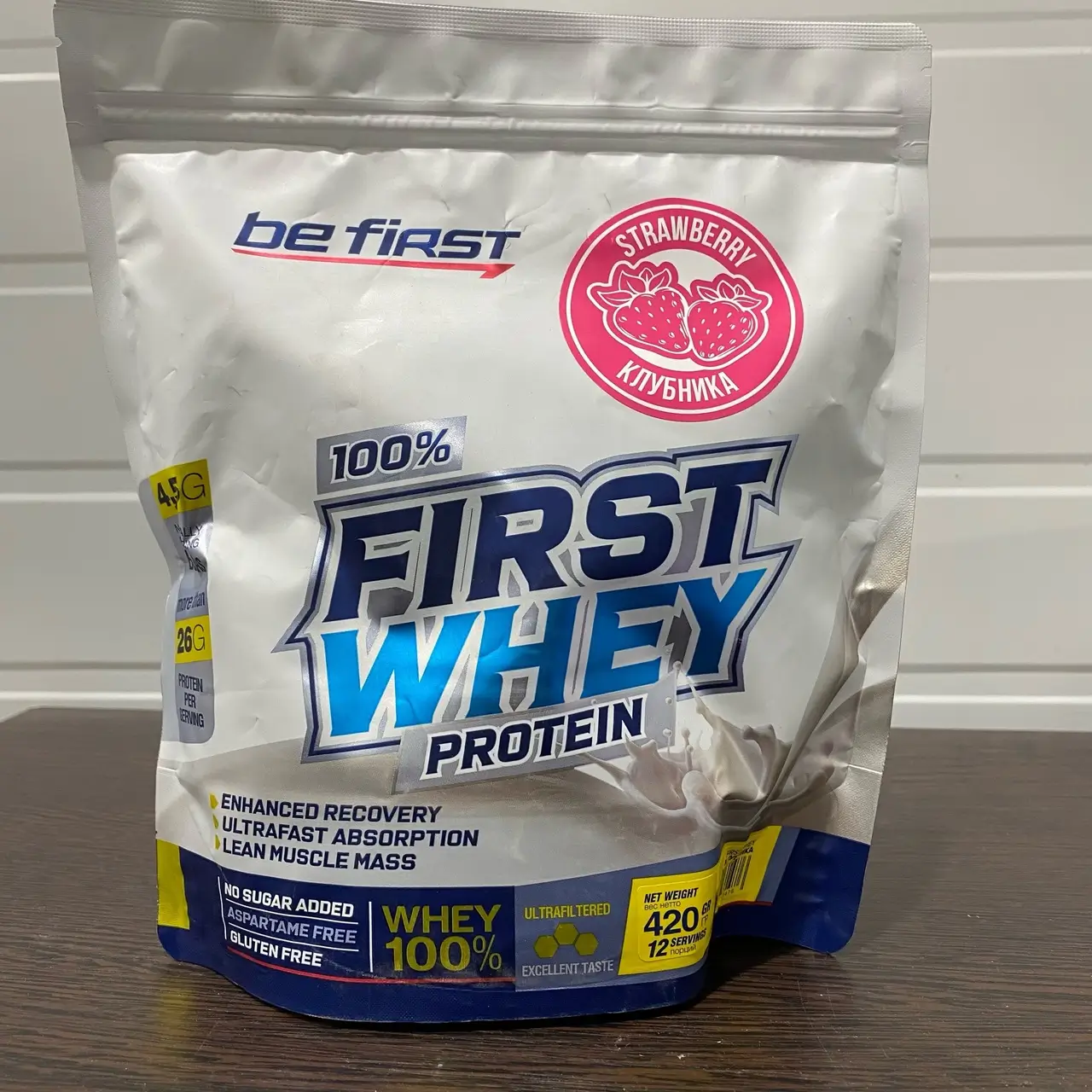 BE FIRST Whey Protein 420g (Клубничное Мороженое) (заклеена дырка, подходящий срок 01/25)