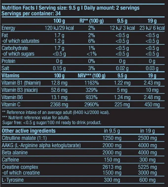 Среди разнообразных действующих веществ порошка есть также экстракты 9-и растений, например Coleus forskohlii, зелёного чайного листа, зелёного кофе и гуараны. Экстракты последних трёх растений также являются источником натурального кофеина, но кроме этого мы добавили в порошок ещё и дегитратизированный кофеин, чтобы дать тебе ещё больше энергии для тренировок! Одно из преимуществ ароматизированного порошка для приготовления напитка Black Burn заключается в том, что в него входят также пищевые волокна инулина.
