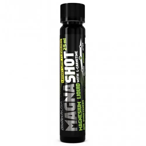 Добавка BioTech Magna Shot содержит магний, L-карнитин, экстракт зеленого чая, калий и витамин B6. Предназначена для устранения дефицита магния, который часто возникает на фоне интенсивных физических нагрузок. Купить этот продукт рекомендуется для увеличения физической силы, концентрации внимания и защиты сердечно-сосудистой системы.
