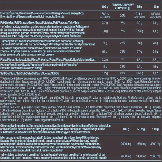Сбалансированная питательная композиция для роста мышц. В дополнение к углеводам и белкам жиры также играют особую роль во время накачки. Этот продукт содержит 2,6 г жира на порцию и поэтому также является идеальным выбором для людей, которым наращивание мышц дается тяжело или которые относятся к крайнему эктоморфному типу.
