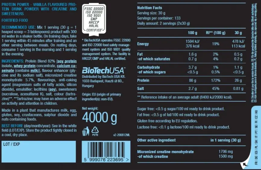 Как и все продукты BioTechUSA, Protein Power изготовлен из безопасных и тщательно отобранных ингредиентов.
