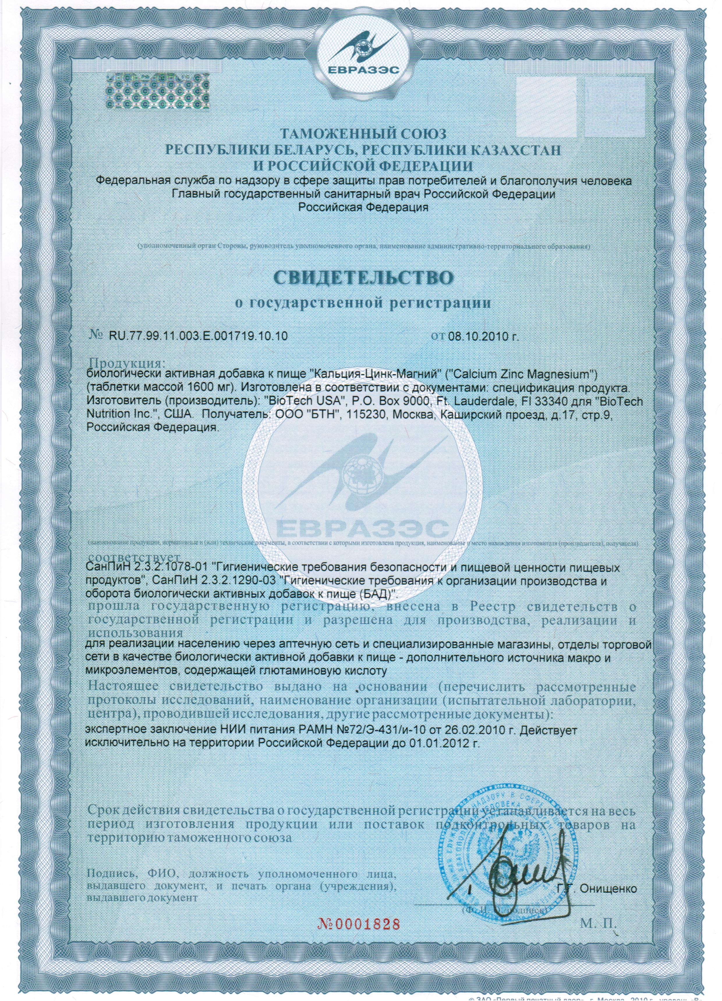 | карбонат кальция, наполнители (микрокристаллическая целлюлоза), гидроксипропиметилцеллюлоза), дикальция фосфат, оксид магния, глютаминовой кислоты гидрохлорид, антислеживатель (стеарат магния, стеариновая кислота), диоксид кремния, оксид цинка, сульфат меди, борная кислота | ||