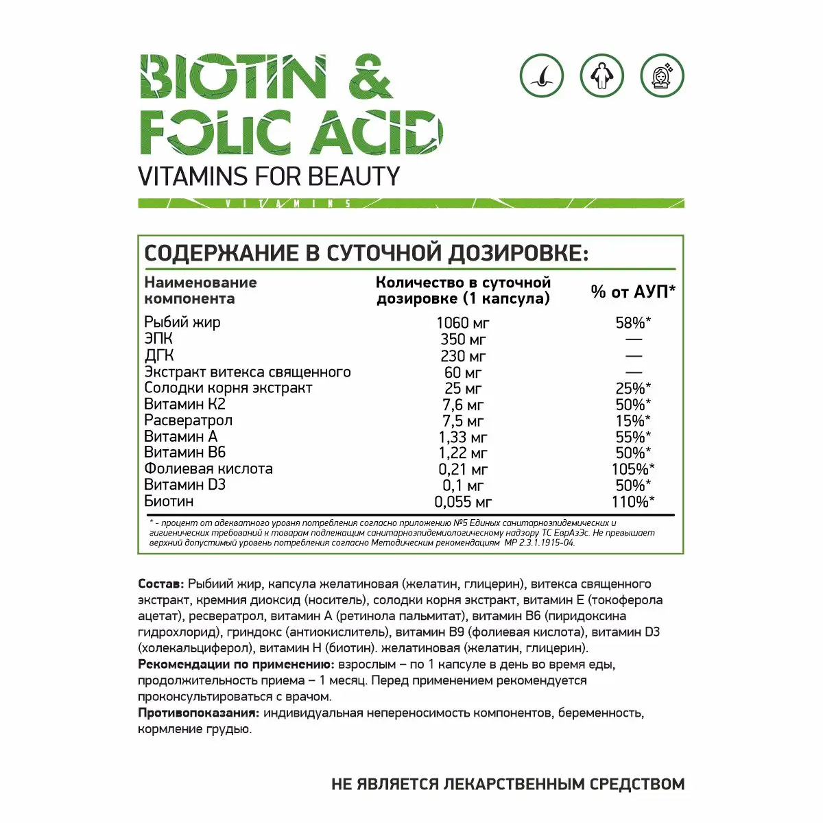 Natural Supp BIOTIN + FOLIC ACID +Оmega 3 60 caps
