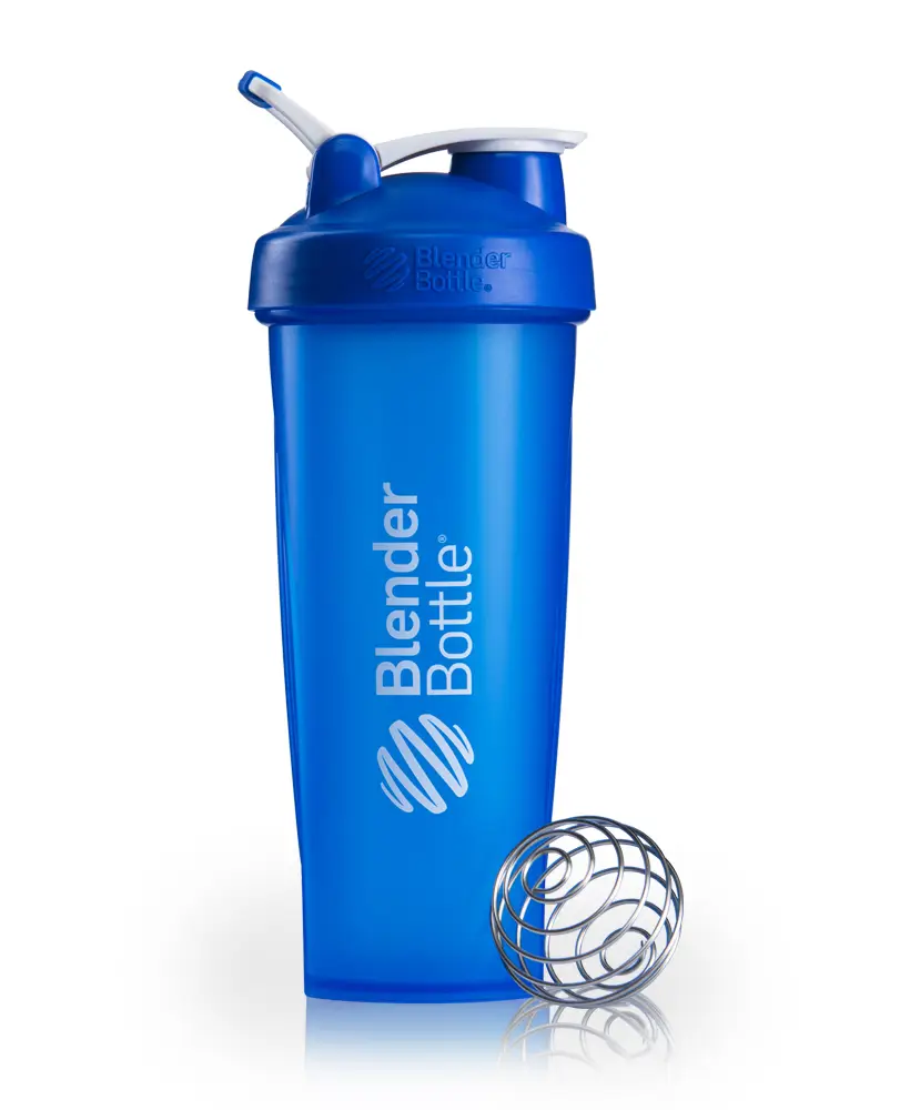 Blender Bottle — аксессуар для спортивного питания, который является гибридом шейкера и сосуда для воды. Сосуд объемом 946 мл имеет горлышко большого диаметра, через которое удобно вводить ингредиенты. Внутри бутылочки имеется венчик, которым можно смешать многокомпонентный коктейль до однородности. Для точной дозировки на стенках стакана предусмотрена шкала в миллилитрах и унциях.