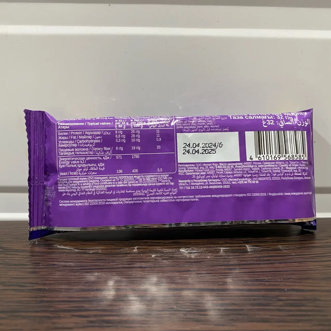 BOMBBAR Батончик вафельный с молочно-ореховой пастой со вкусом 32 г (Топленое молоко) (Подходящий срок, 04/25)