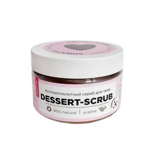 Применение: Заботливо нанеси скраб на тело массирующими движениями, сделай лёгкий массаж в течение пары минут и смой dessert-scrub тёплой водой. Используй 2-3 раза в неделю. Для максимального эффекта комбинируй с другими средствами из серии CHIKALATE. ВНИМАНИЕ! Противопоказан при варикозном расширении вен.