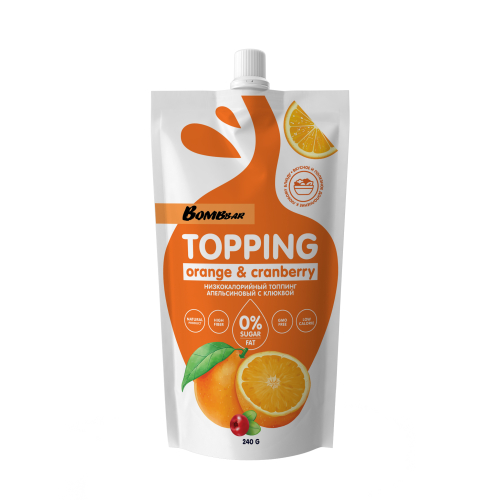 Bombbar Топпинг 240 г — вкусный низкокалорийный соус без добавления сахара, созданный специально для тех, кто хочет наслаждаться десертами и при этом заботиться о фигуре. В составе только натуральные ингредиенты: яблочное пюре, ягоды, апельсин и имбирь, которые придают топпингу насыщенный вкус и пользу.
