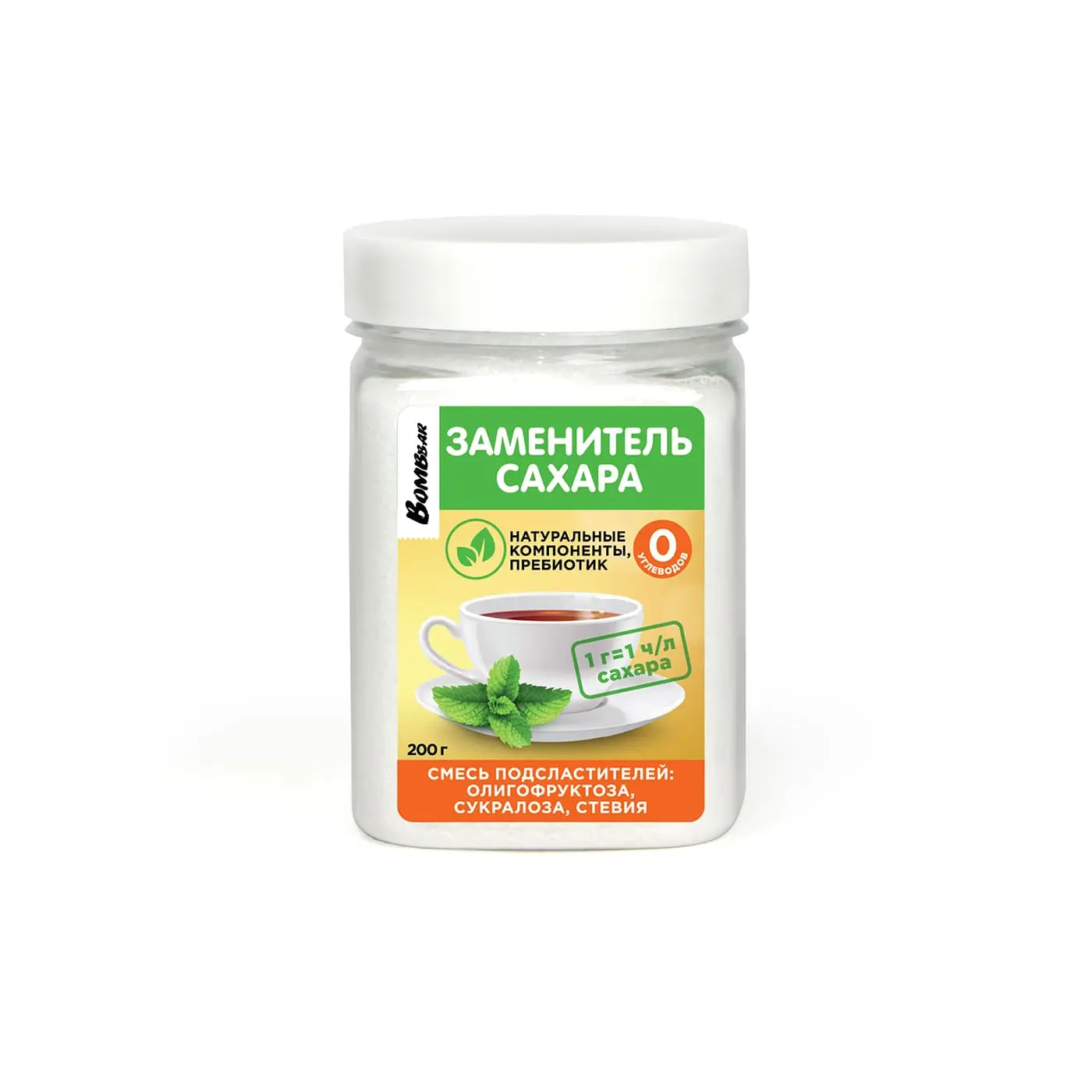 BOMBBAR Заменитель сахара "Олигофруктоза, сукралоза, стевия" 200 гр