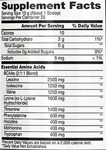 10 г всех 9 незаменимых аминокислот. Разработан с докторской степенью, чтобы имитировать аминокислотный профиль сывороточного протеина для поддержки синтеза мышечного протеина.