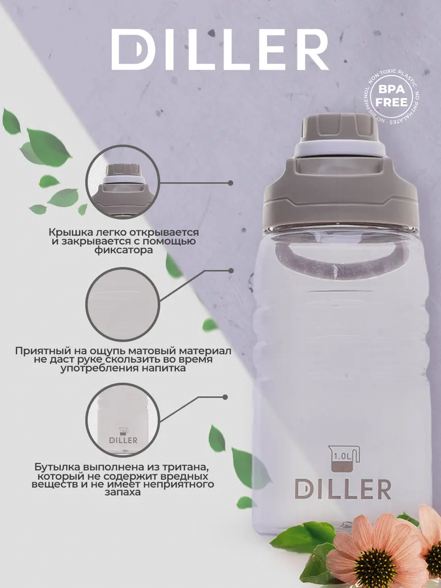 Бутылка для воды Diller D22 1000ml (Бежевый)