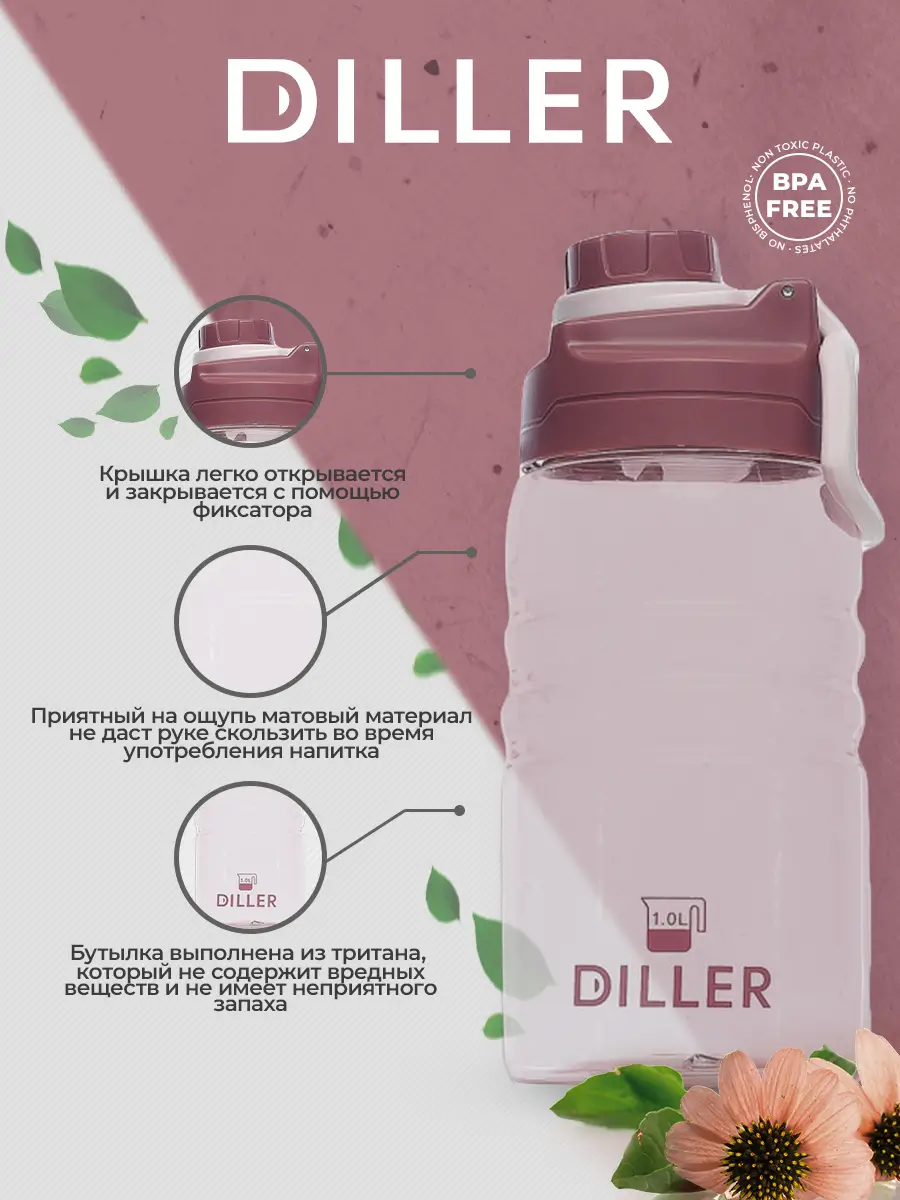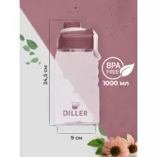 Бутылка для воды Diller D22 1000ml (Розовый)