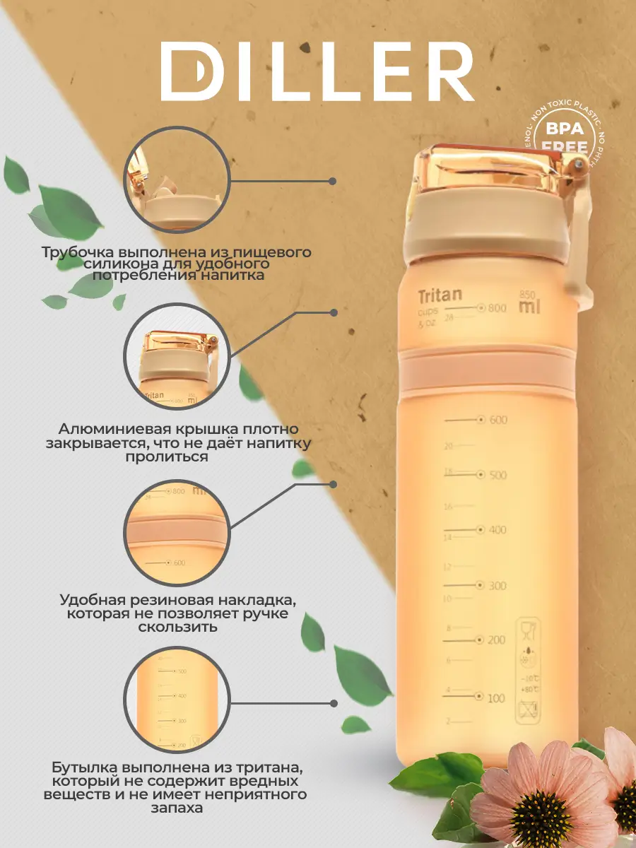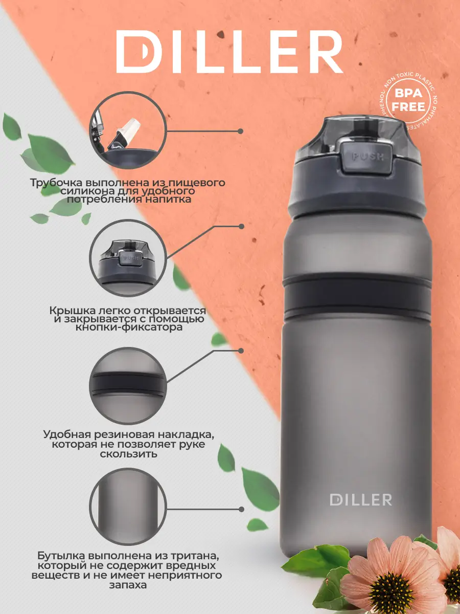 Бутылка для воды Diller D37 850 ml