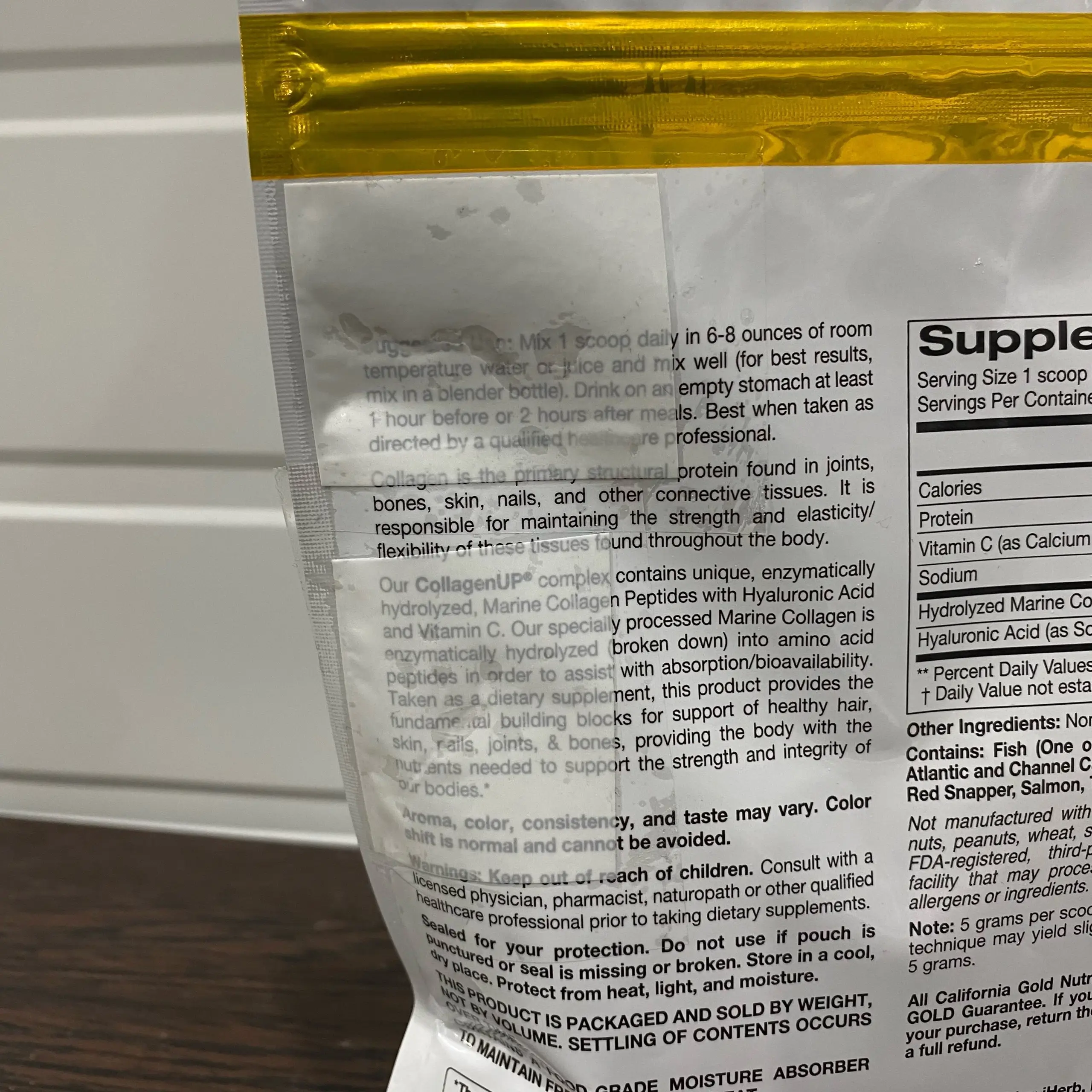 CALIFORNIA GOLD NUTRITION Collagen UP with Hyaluronic Acid and Vitamin C 206g (заклеены дырки, 02/28)