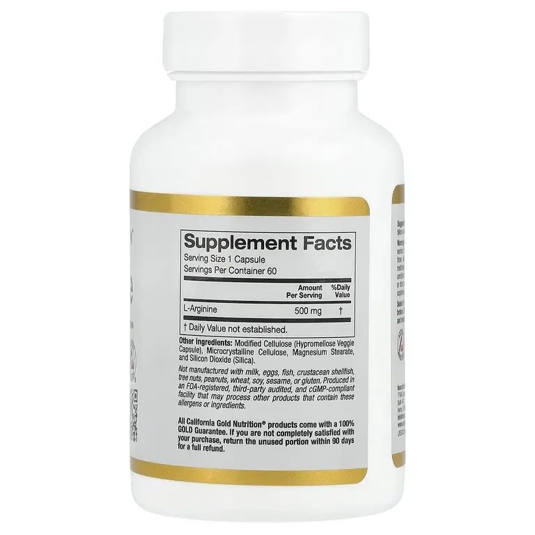 L-Аргинин 500 мг от California Gold Nutrition – ваш надежный помощник в поддержании здоровья и физической формы!