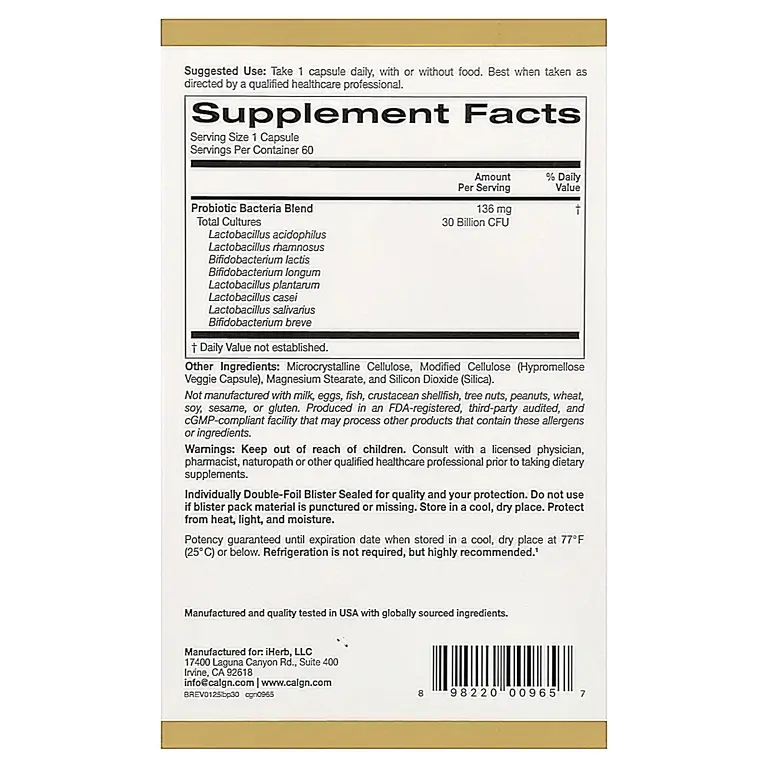 California Gold Nutrition LactoBif 30 — пробиотики 30 миллиардов КОЕ для поддержки пищеварения и иммунитета