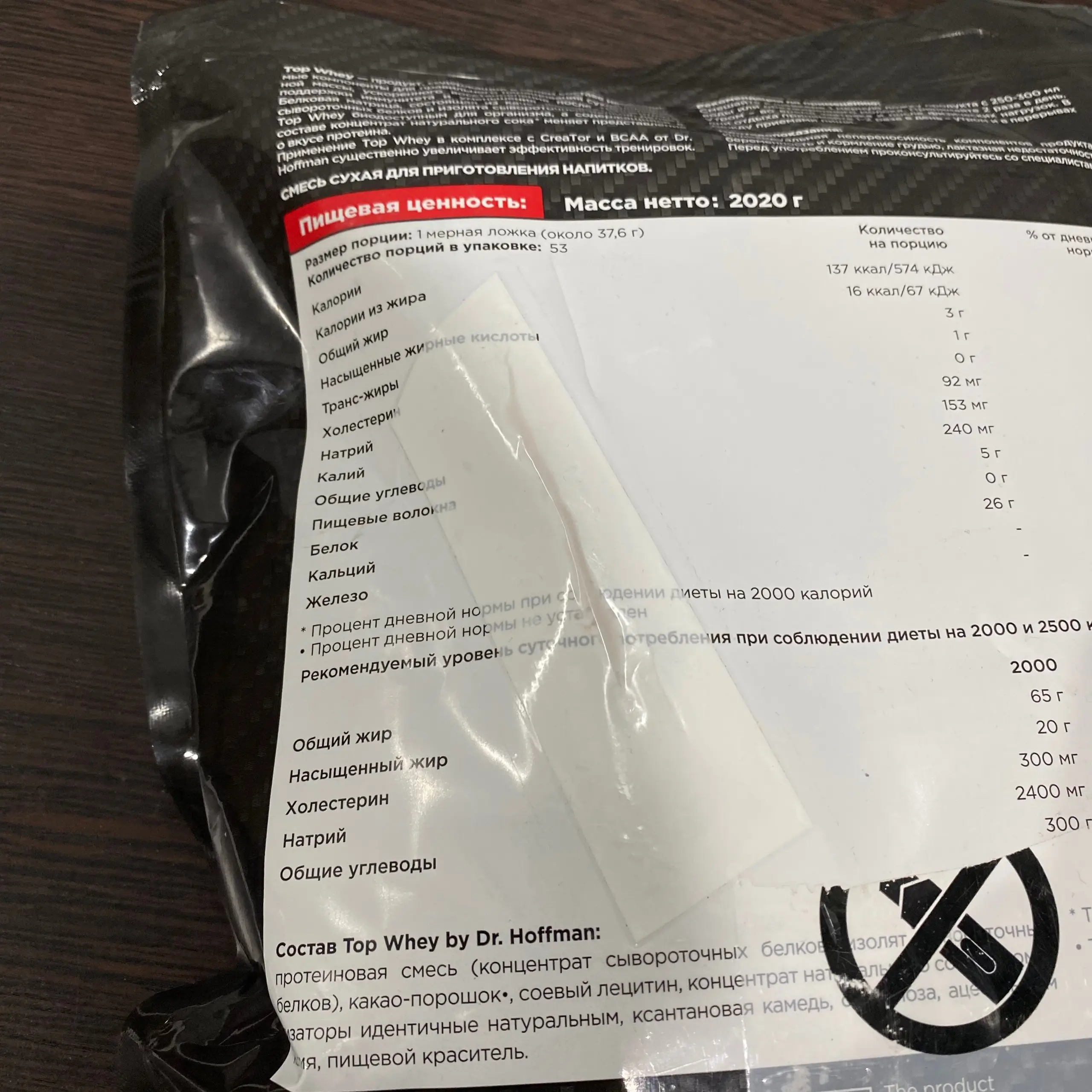 DR.HOFFMAN Top Whey 2020g (Орео) (заклеена дырка, 04/27)
