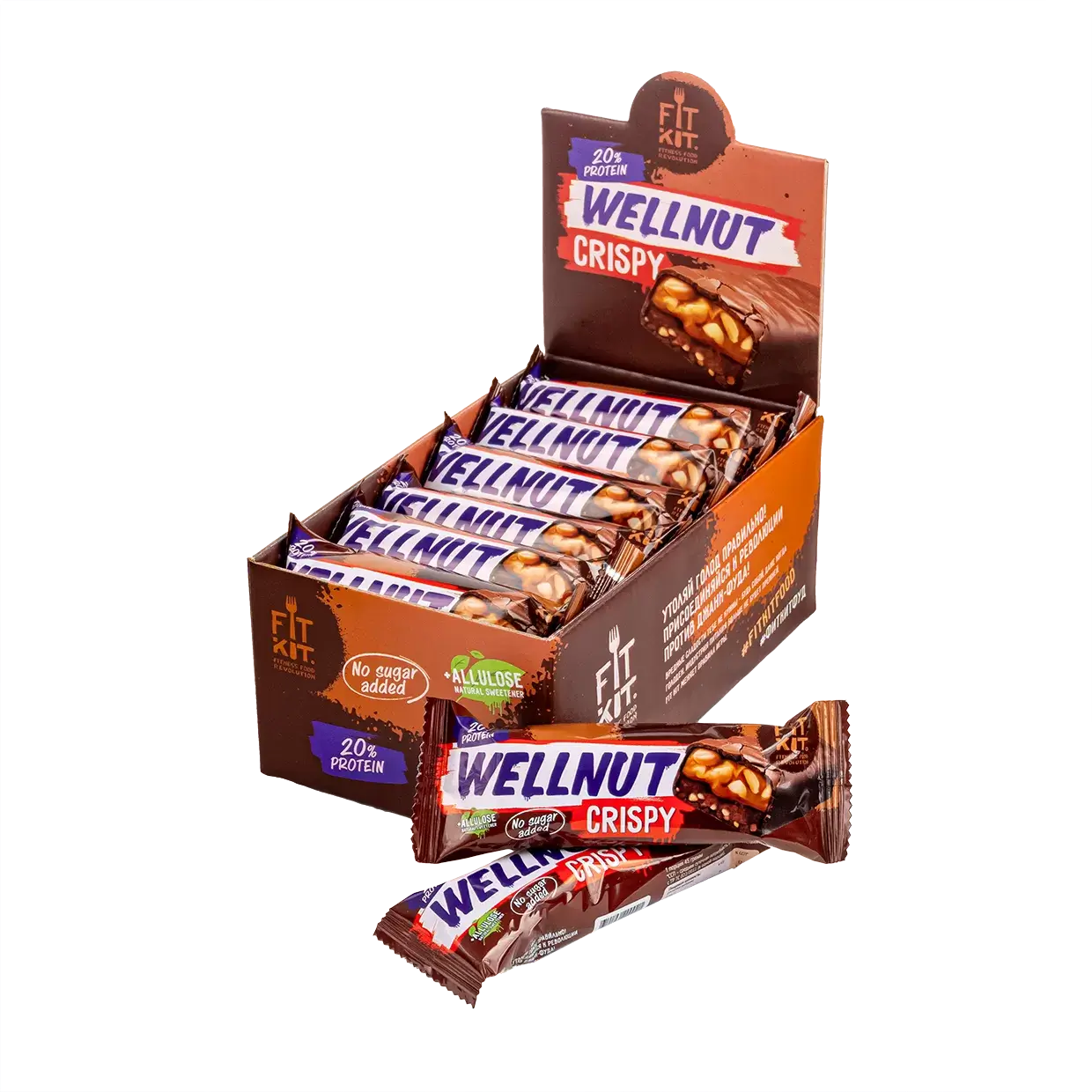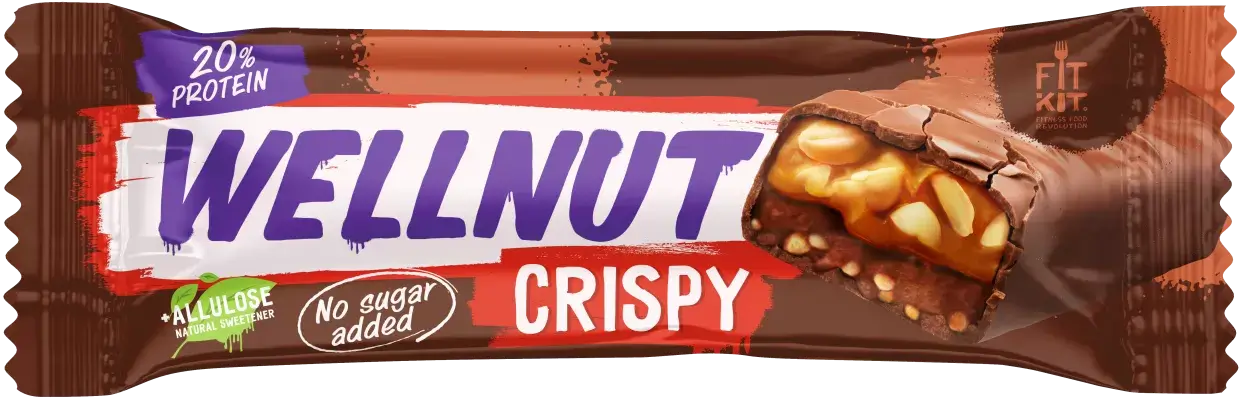 Fit Kit Батончик глазированный с начинкой со вкусом «Арахис-карамель» WELLNUT 45г