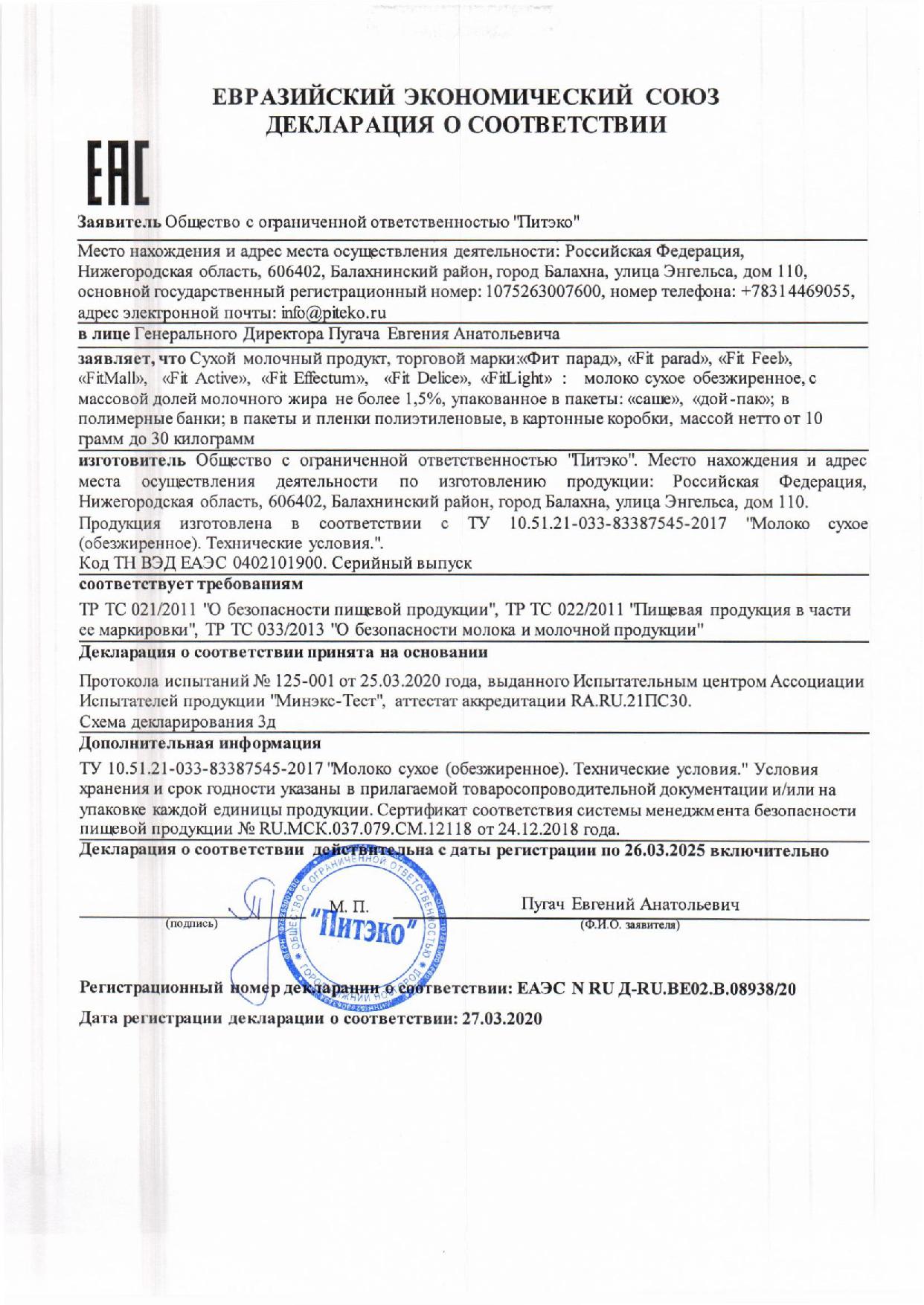 Fit Parad Молоко сухое обезжиренное FitFeel 1,5% 300 г