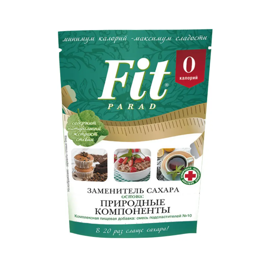 Пищевая сладкая смесь в 20 раз слаще сахара. В составе смеси «ФитПарад» исключительно природные компоненты, в том числе натуральный сахарозаменитель стевиозид. Продукт может использоваться в качестве подсластителя при приготовлении блюд и напитков.