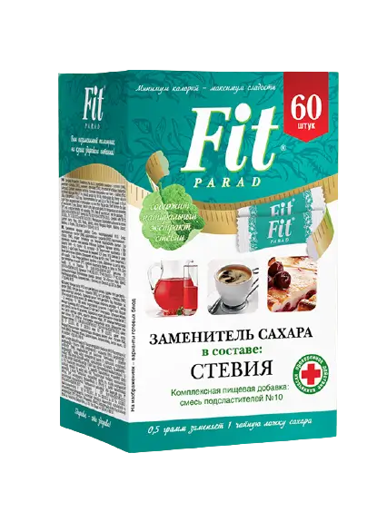 Пищевая сладкая смесь в 10 раз слаще сахара. В составе смеси «ФитПарад» исключительно природные компоненты, в том числе натуральный сахарозаменитель стевиозид. Продукт может использоваться в качестве подсластителя при приготовлении блюд и напитков.