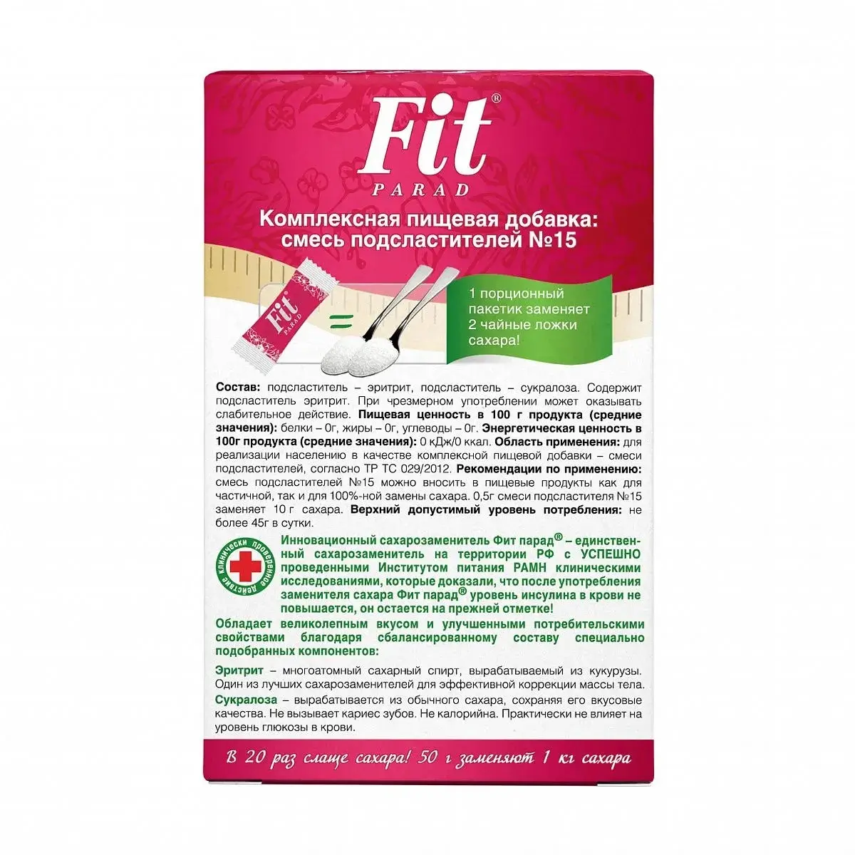 Fit Parad Комплексная пищевая добавка: смесь подсластителей № 15 50 г стик 100 шт