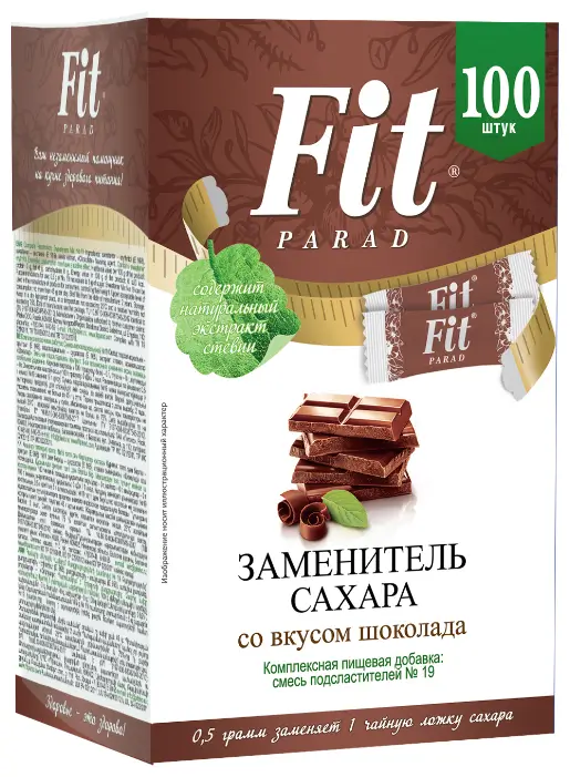 Ароматизированный заменитель сахара Fit Parad со вкусом Шоколад. Прекрасный аналог сахара, с прекрасными потребительскими свойствами и великолепным вкусом. Использования для приготовления и добавления в напитки (кофе, чай, какао) Стик 0,5 гр смеси заменяет 5 гр сахара