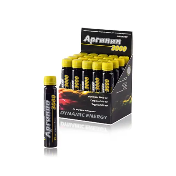 Аргинин 3000: Аргинин 3000 мг + гуарана 300 мг + таурин 500 мг - в одной ампуле! Напиток с мощным тонизирующим и жиросжигающим эффектом. Улучшает кровоснабжение мышц. Обеспечивает быстрое восстановление и длительную работоспособность. Аргинин – условно заменимая аминокислота, входит в состав ключевых белков организма. Являясь донором и естественным переносчиком азота, усиливает синтез веществ, регулирующих тонус сосудов артериального русла, нормализуя давление. Активно участвует в цикле белкового обмена и способствует выведению из организма белковых шлаков, обеспечивая длительную работоспособность. Определяет ускоренный синтез соматотропного гормона, что делает человека более активным, энергичным, выносливым. Ускоряет процессы заживления поврежденных тканей – ран, растяжения сухожилий, переломов костей, используется в профилактике лечения артритов. В сочетании с гуараной и карнитином обеспечивает мощный энергетический потенциал. Улучшает функциональное состояние мышечной ткани. Обладает ярковыраженным жиросжигающим эффектом.