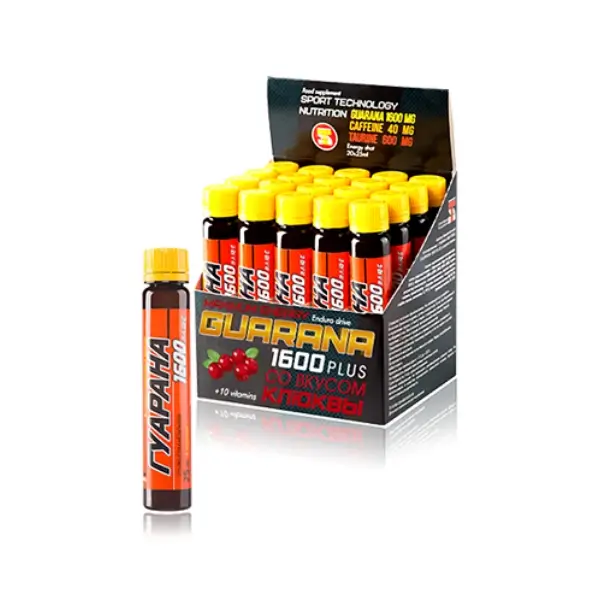Растительный экстракт гуараны является природным источником кофеина, который способствует выработке адреналина, стимулирует нервную систему, улучшает когнитивные способности и мощность мышечных сокращений. Таурин и экстракт лимонника дополняют действие гуараны, улучшают жировой обмен и способствуют высвобождению энергии, необходимой для эффективных тренировок. Также напиток Guarana 1600 обогащен комплексом витаминов, который оказывает общеукрепляющее действие.