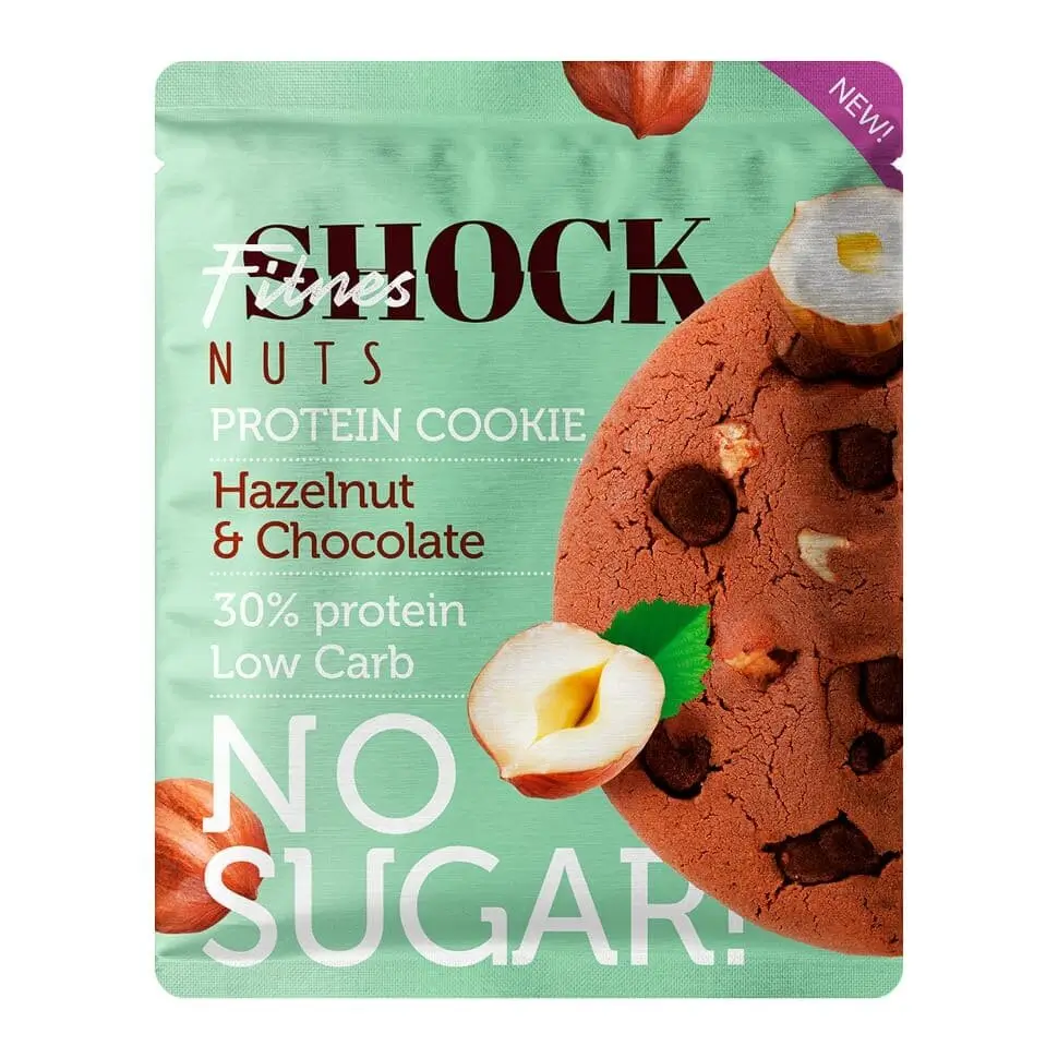 Fitnes SHOCK NUTS Печенье с цельным орехом и шоколадными каплями без сахара 1 шт. 40 г