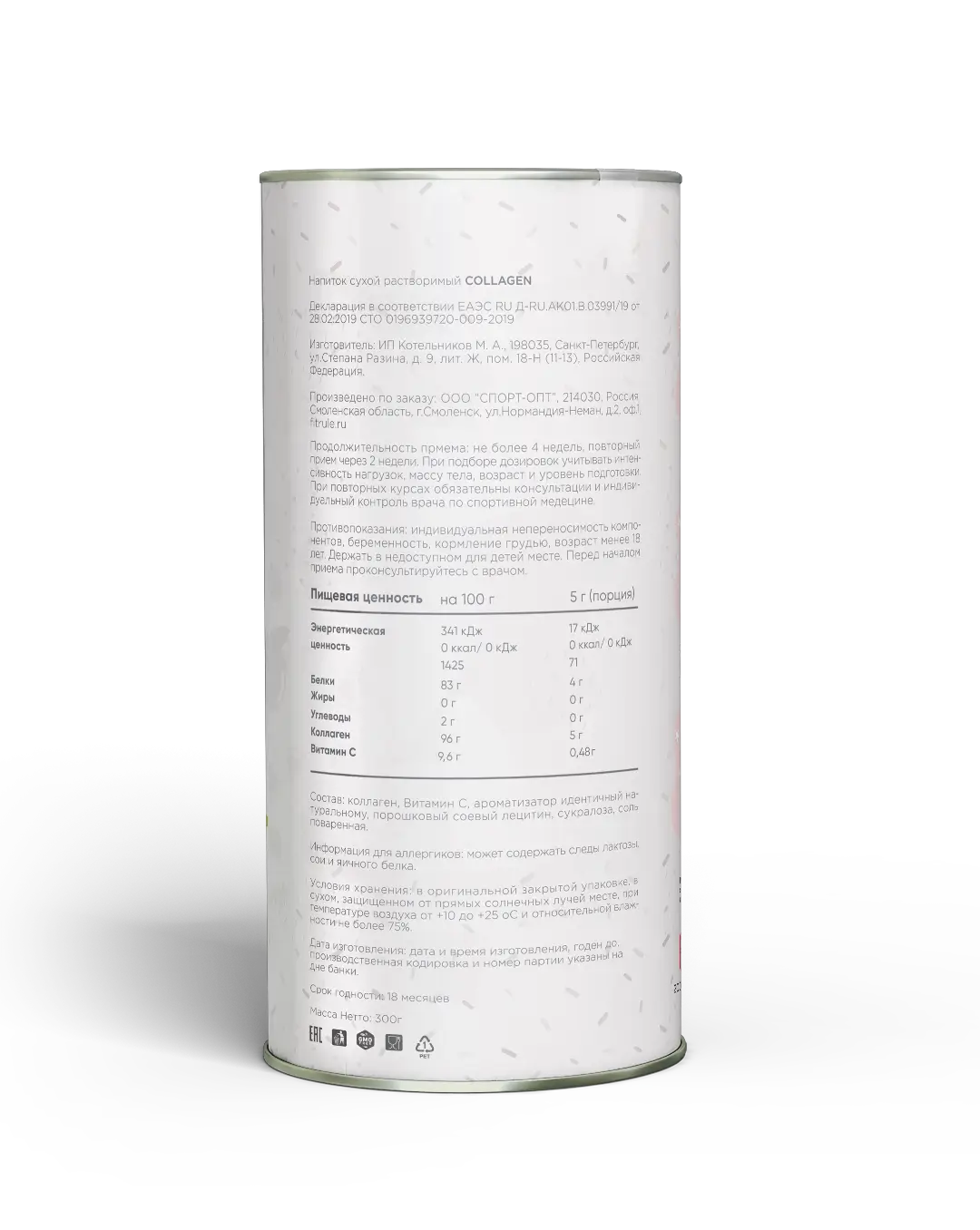 Состав - коллаген, Витамин С, ароматизотор идентичный натуральному, порошковый соевый лецитин, сукралоза, соль повареная.