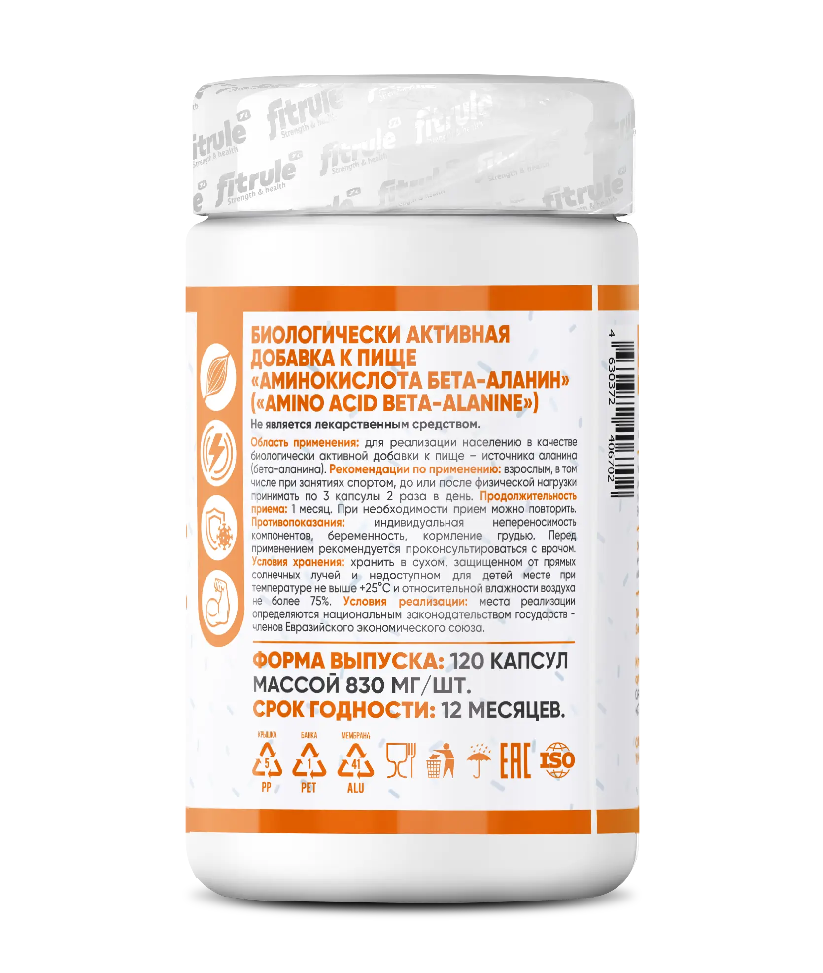 Fitrule Beta Alanine – это особая форма аминокислоты аланина. Вместе с гистидином образует в мышцах специальный пептид – карнозин.
