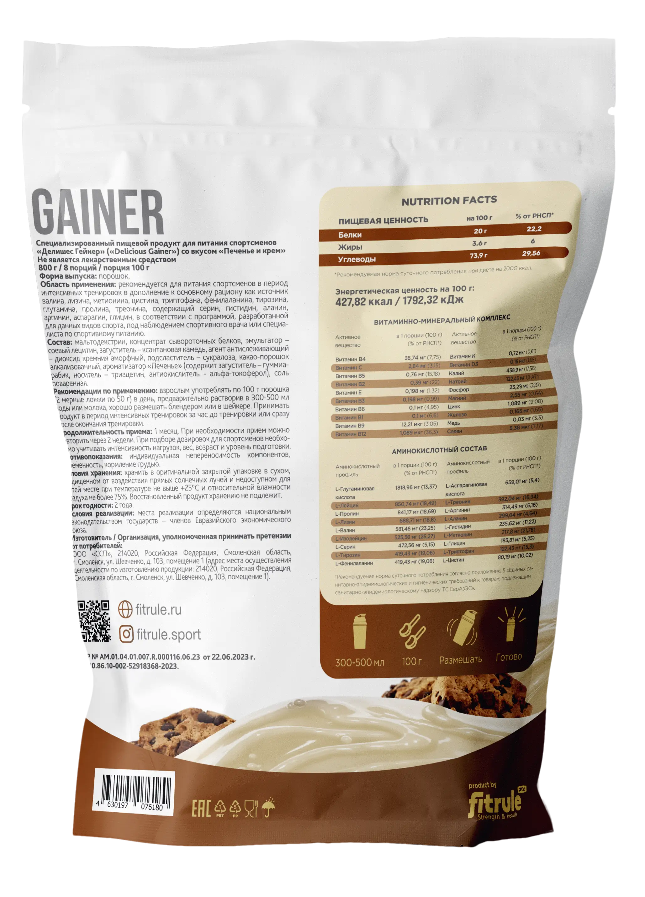 Fitrule Gainer 800g – мощное восстановление и набор массы