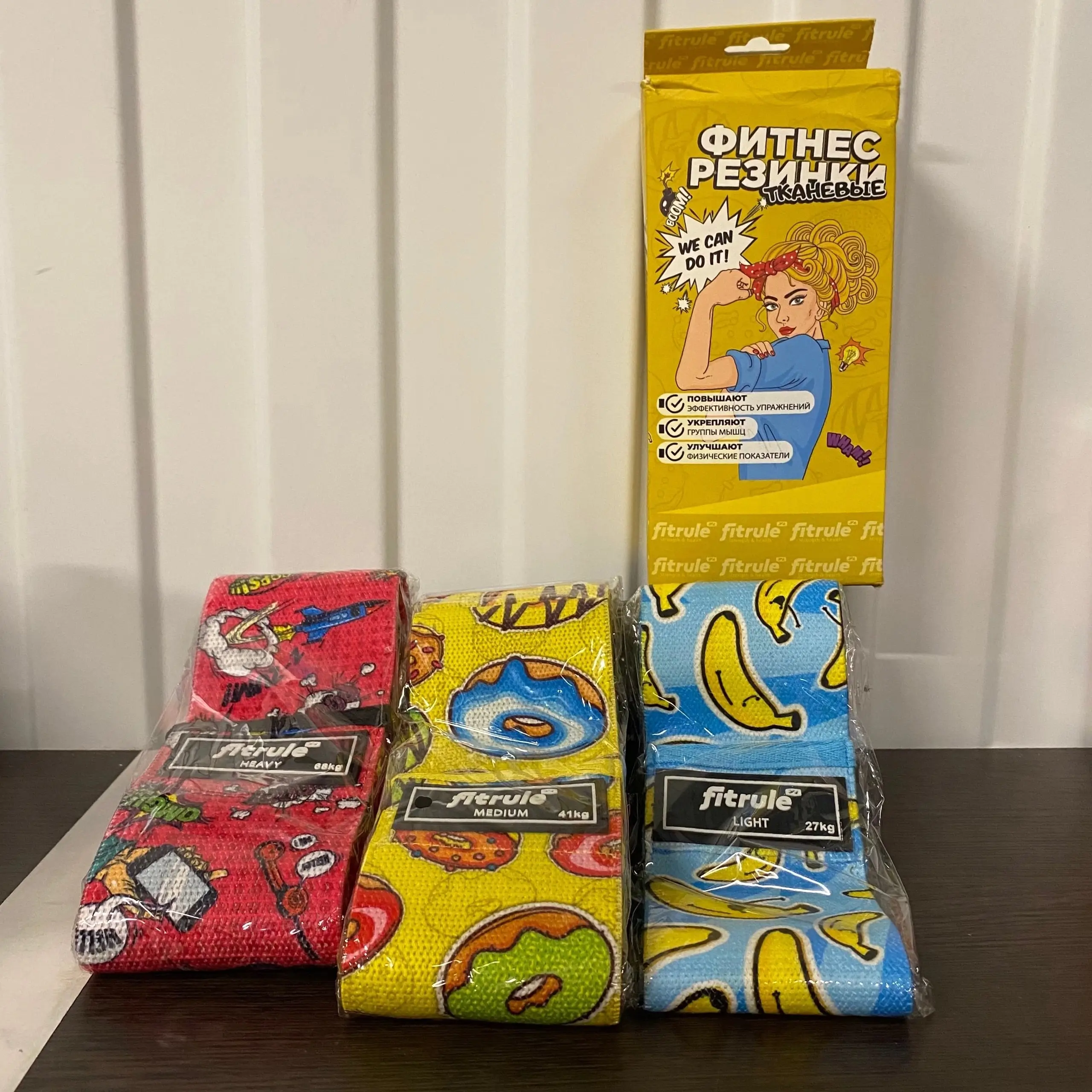 FITRULE Набор принтованных резинок для ног 3 шт. (банан 27kg, пончик 41g, комикс 68kg) (повреждена упаковка)