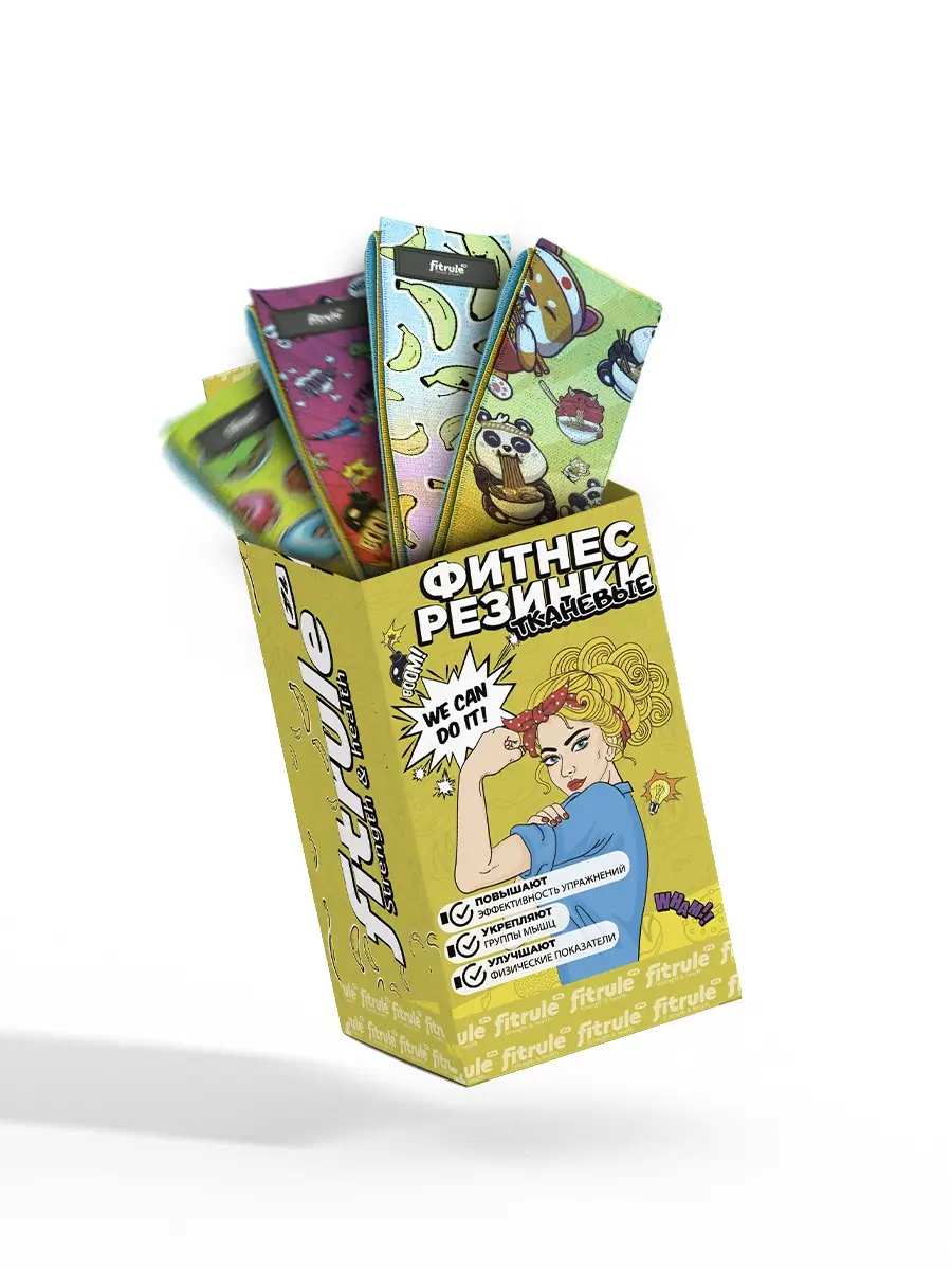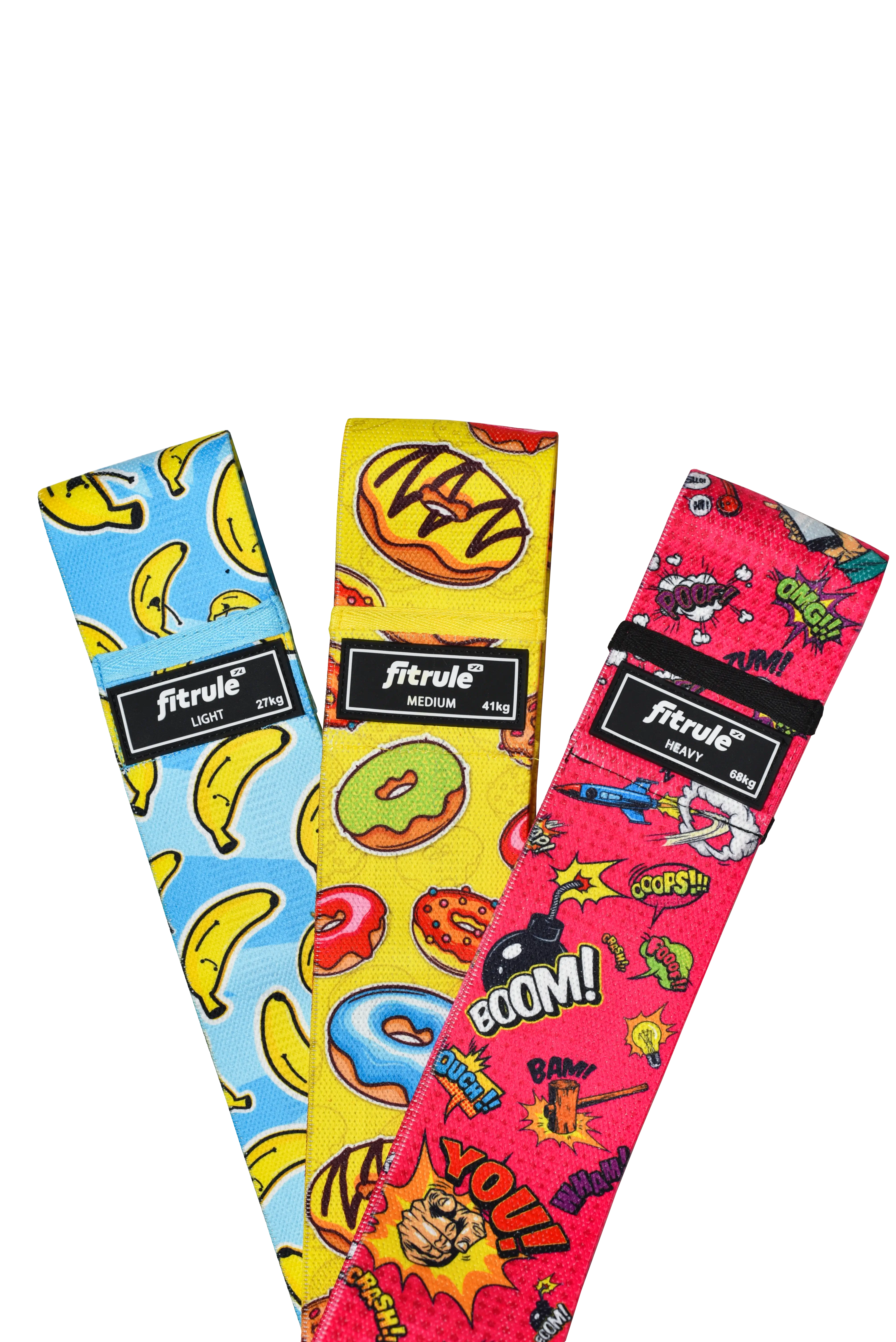 FitRule Набор принтованных резинок для ног Fitrule (3 штук, банан, пончик, комикс)