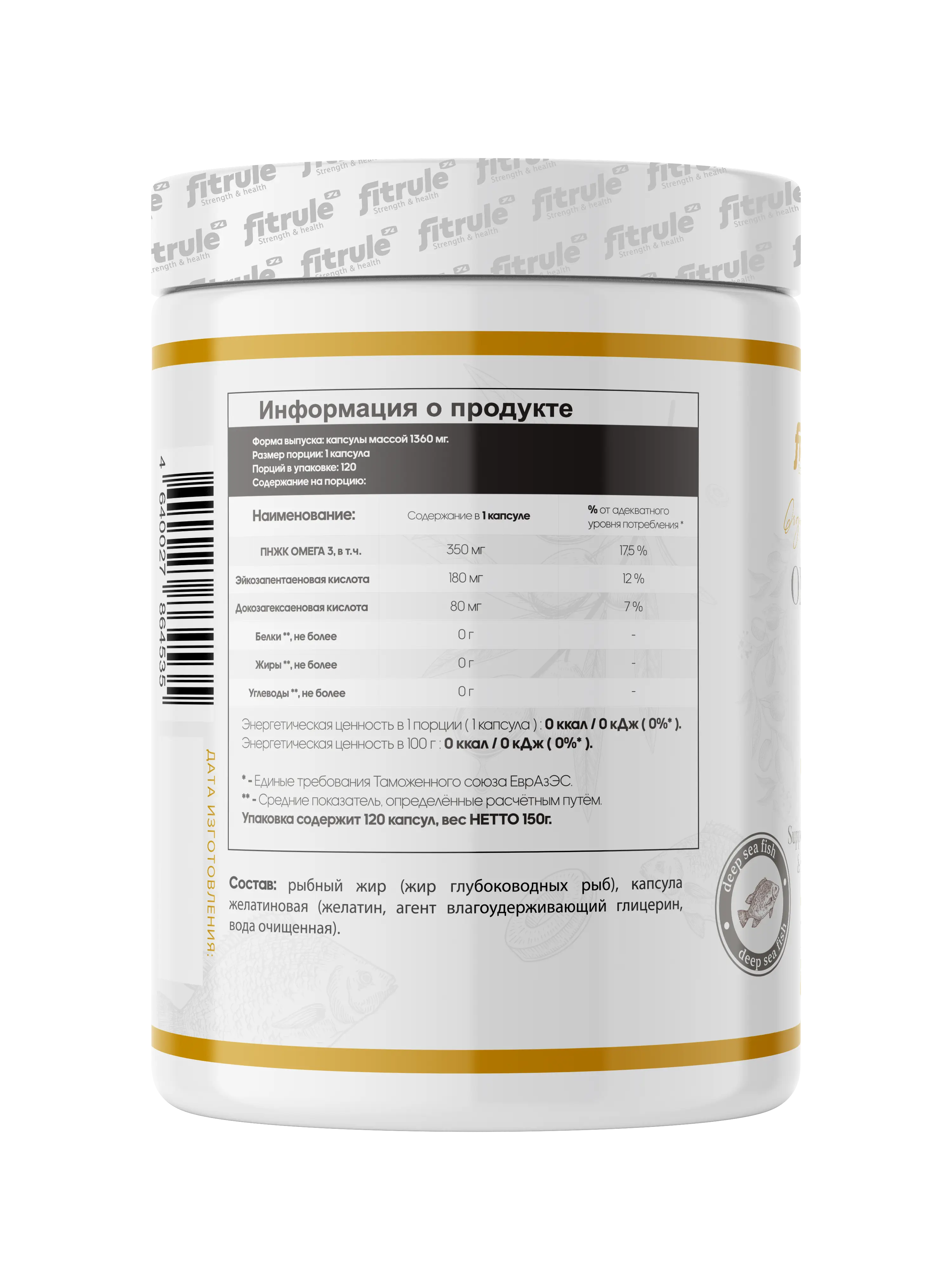 Fitrule Omega-3 — источник EPA и DHA для сердца, мозга и суставов, 120 капсул