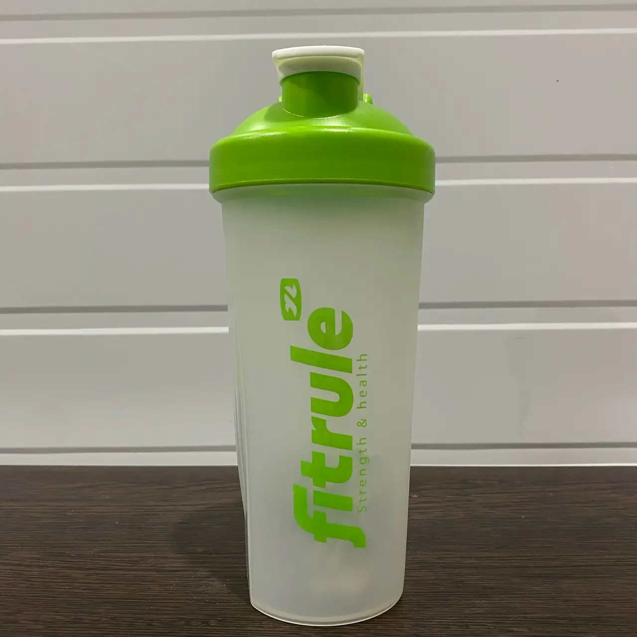 FITRULE Шейкер классический 600ml (прозрачный зеленый лого+зеленая крышка) (потёртый)