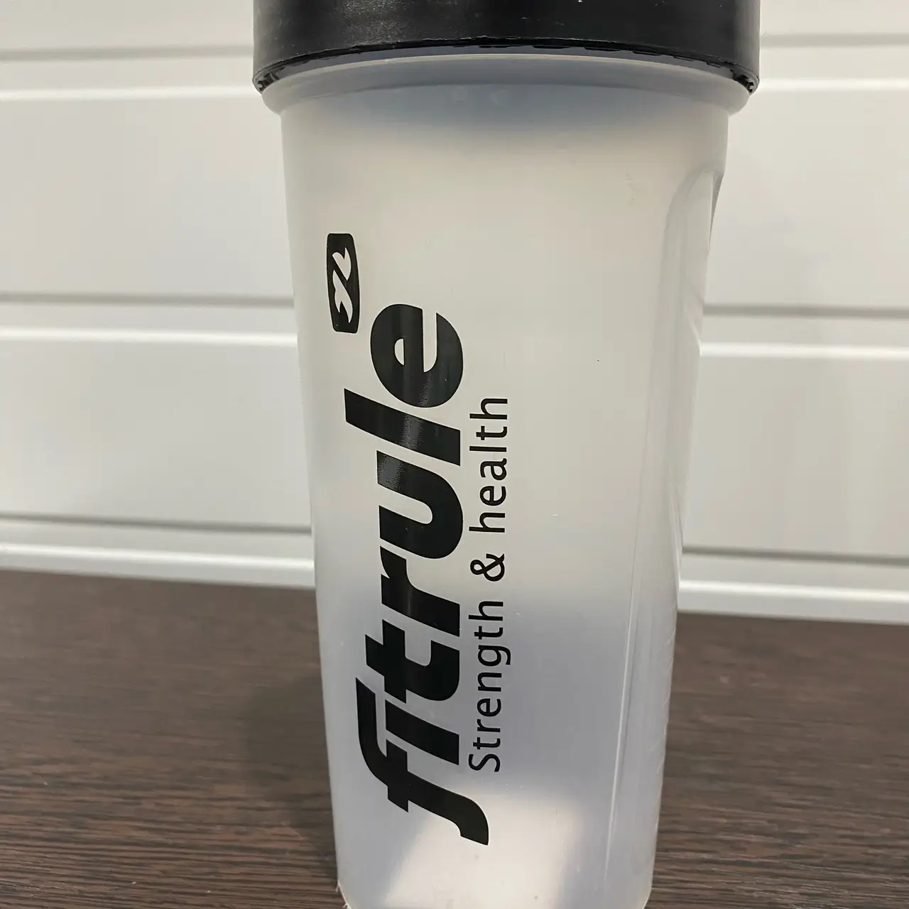 FITRULE Шейкер классический с крючком 600ml (прозрачный чёрное лого + черная крышка) (потёртый)