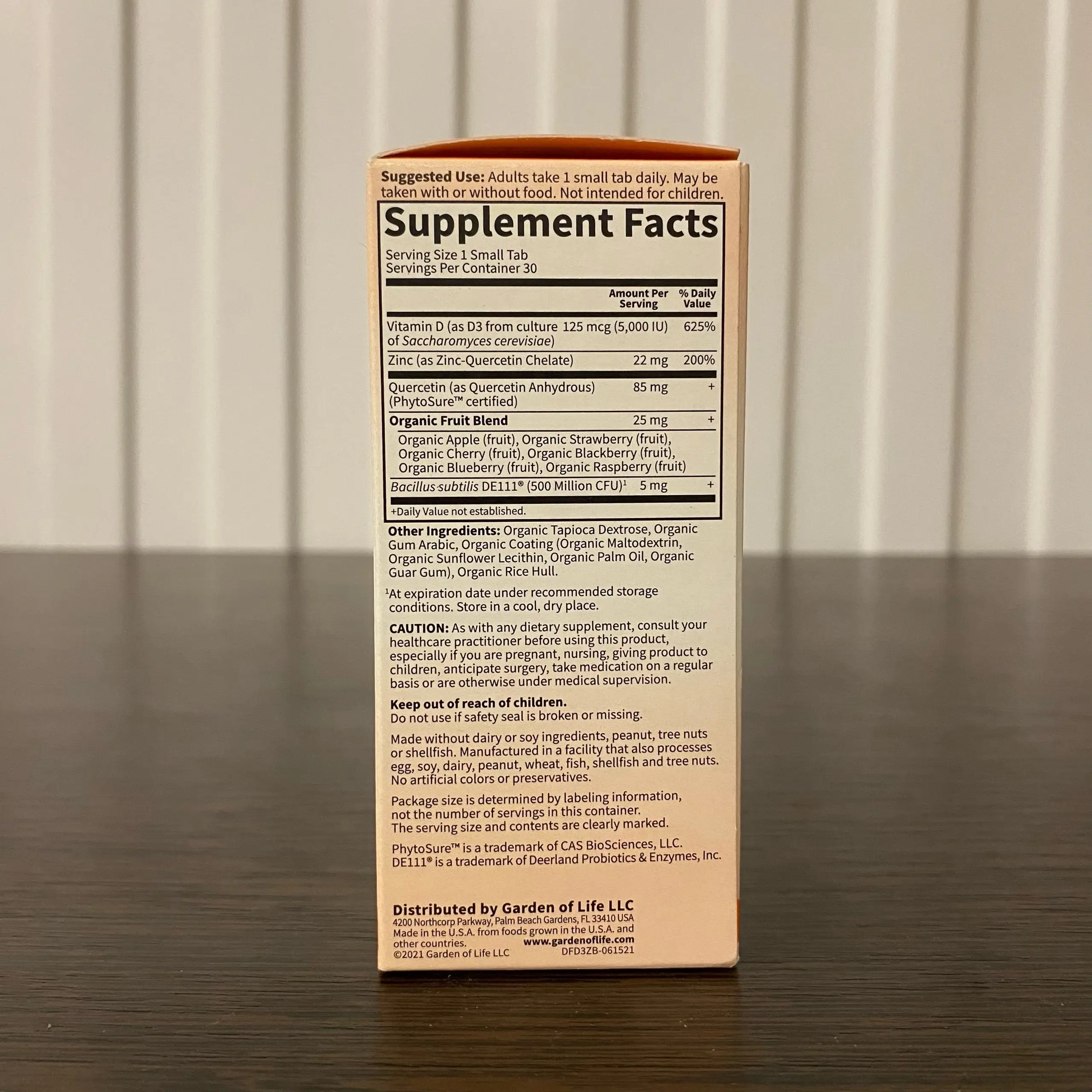 GARDEN OF LIFE Dr.Formulated Vitamin D3 5000 IU and Zinc 30 tabs (подходящий срок, 11/24)