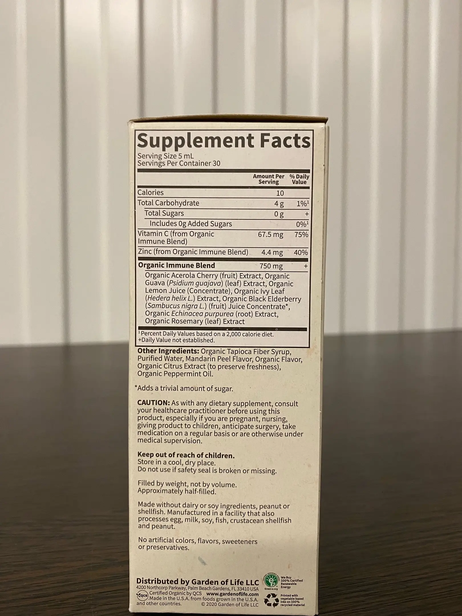 | Органическая иммунная смесь Экстракт плодов органической ацеролы, экстракт листьев органической гуавы (Psidium guajava), концентрат органического лимонного сока, листьев органического плюща (Hedera helix L.) Экстракт, концентрат сока органического сока черной бузины (Sambucus nigra L.) *, экстракт корня органической эхинацеи пурпурной, экстракт листьев органического розмарина |