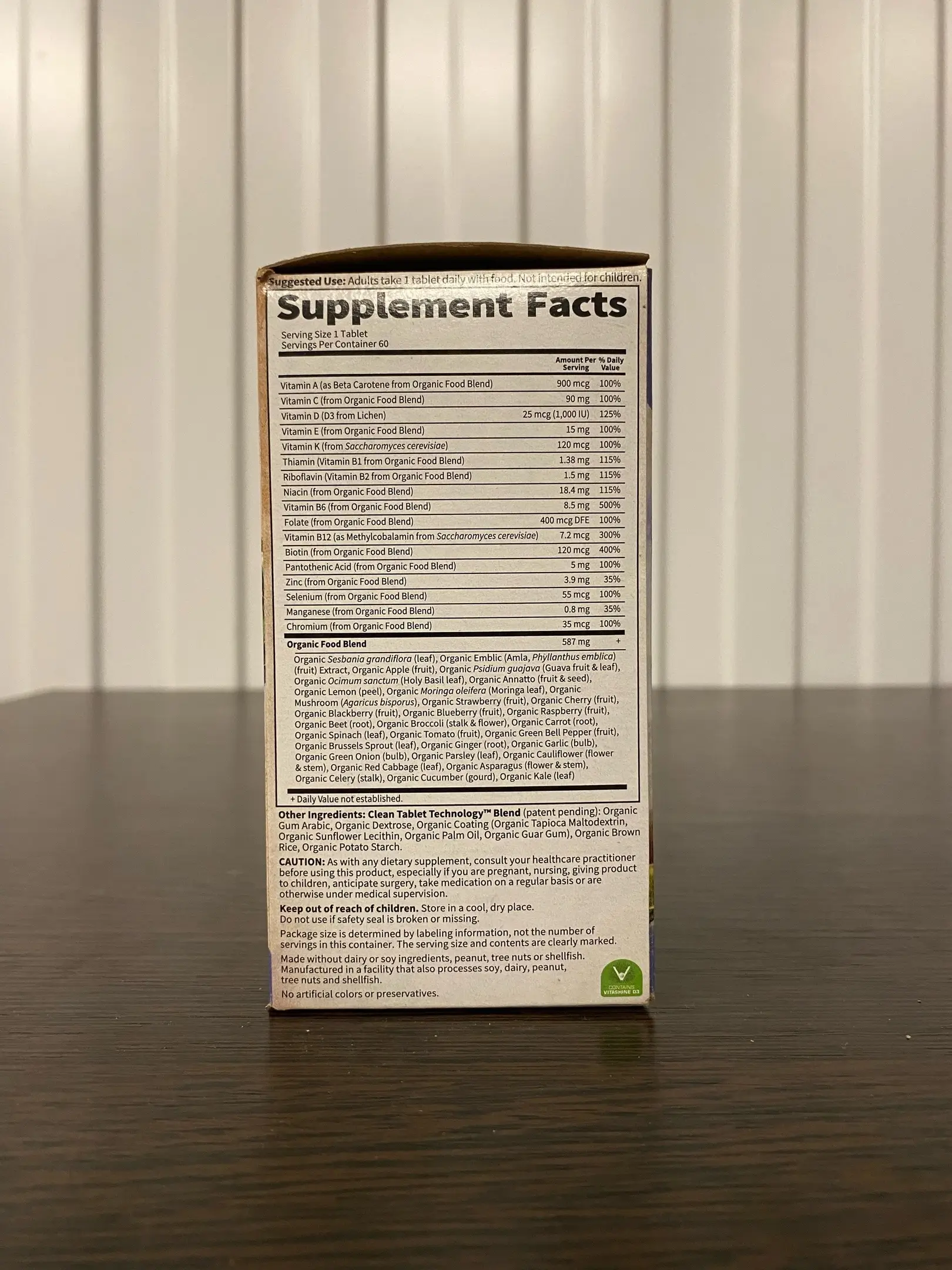 | Витамин C (из смеси органических пищевых продуктов) | 90 мг | 100% |