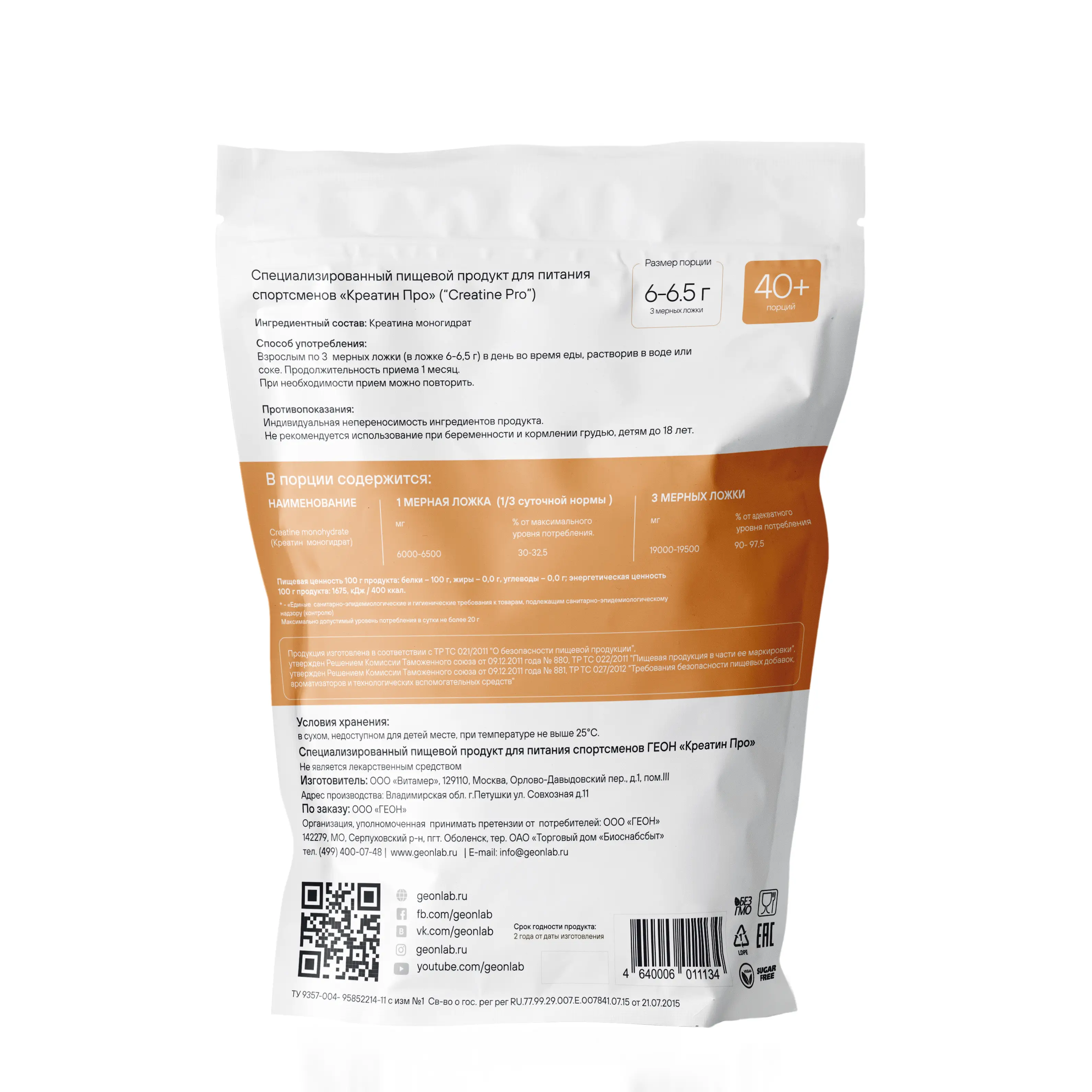 | Креатин моногидрат | 100 г | 18 г | |||