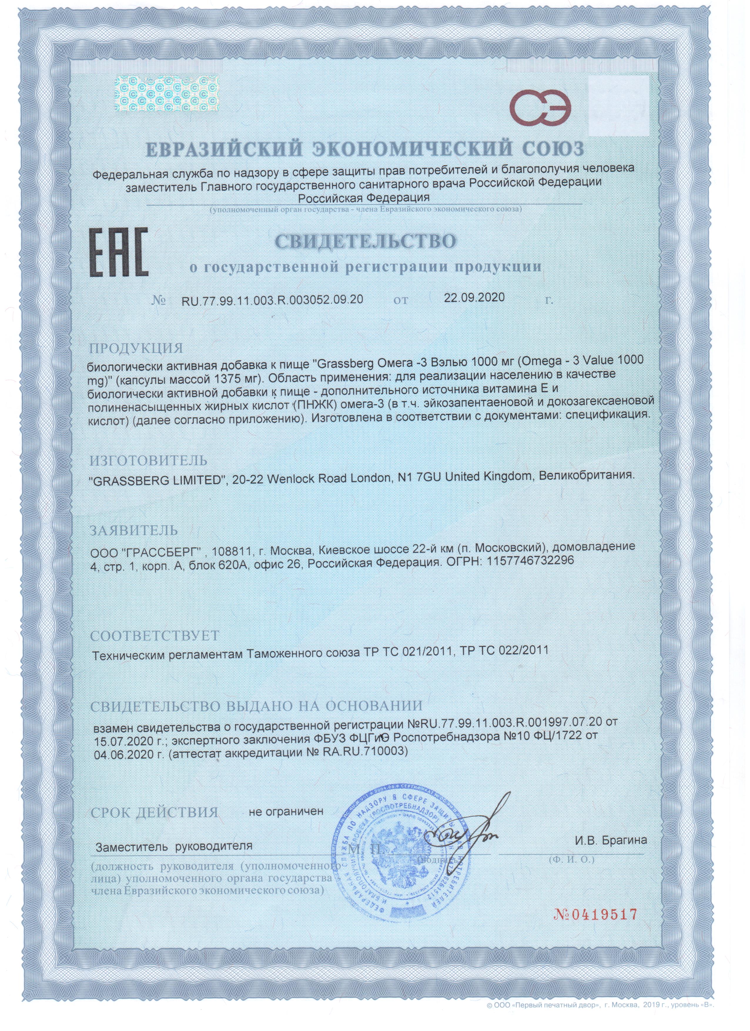 В каждой капсуле продукта высокое содержание активных нутриентов 18% EPA (ЭПК) и 12% DHA (ДГК). Рыбий жир,