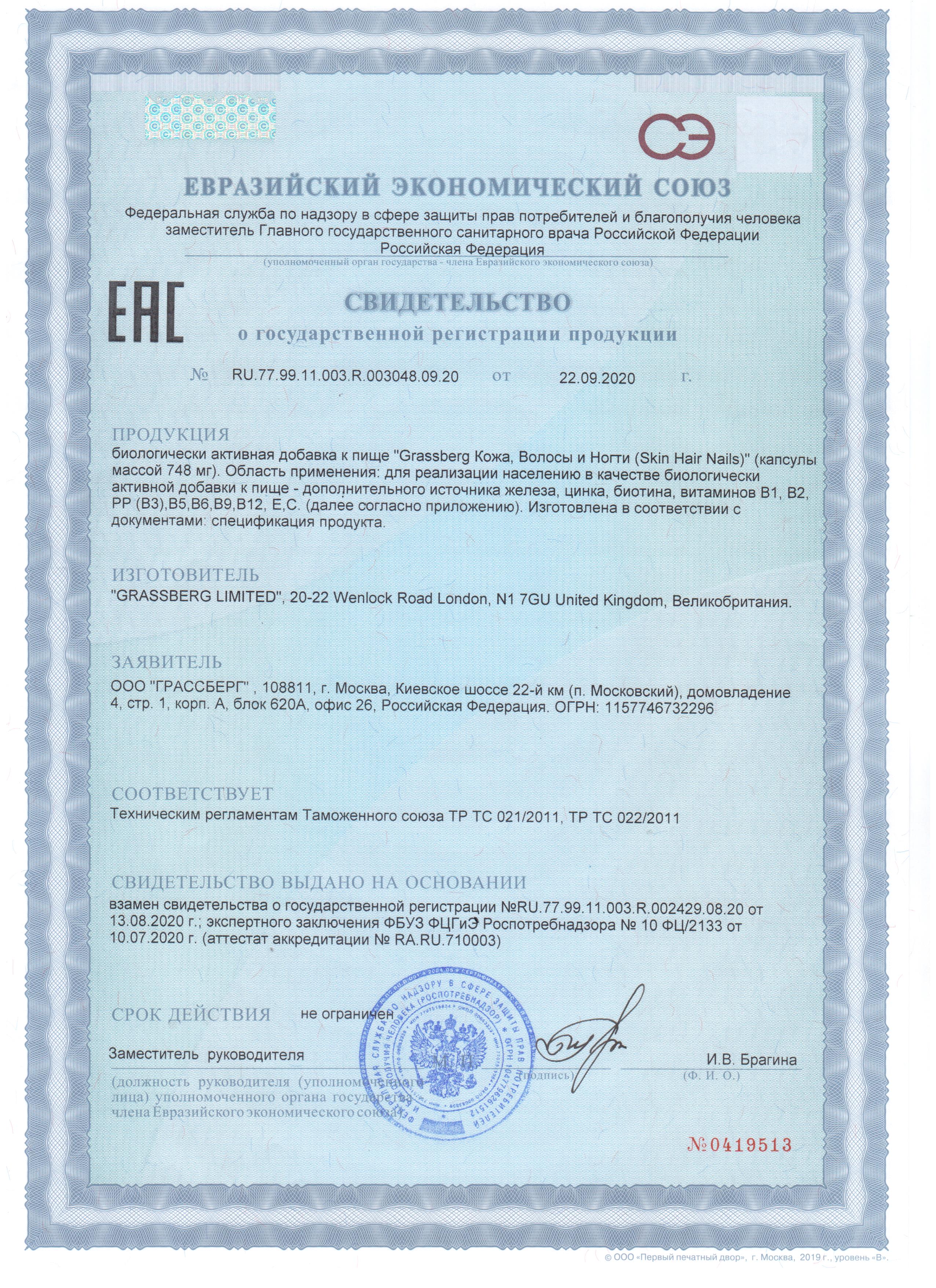 В составе Skin Hair Nails Grassberg: