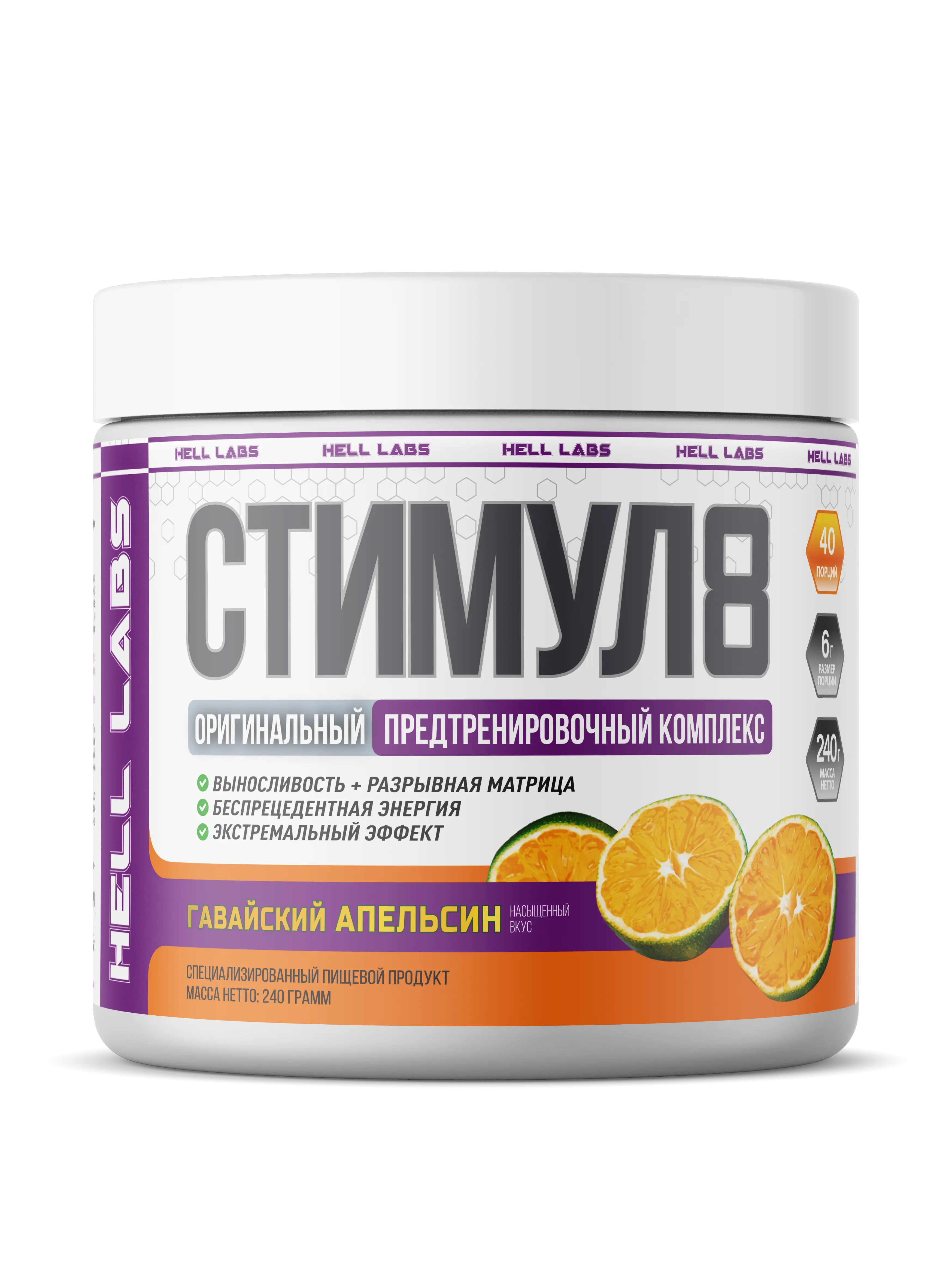 Hell Labs Stimul8 240g – мощный предтреник для энергии, выносливости и жиросжигания